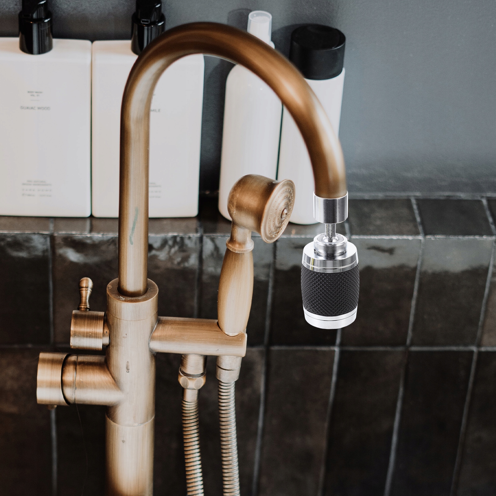 Коли вода тече з крана через цей аератор у раковину, вона стає м’якою та зменшує вплив.