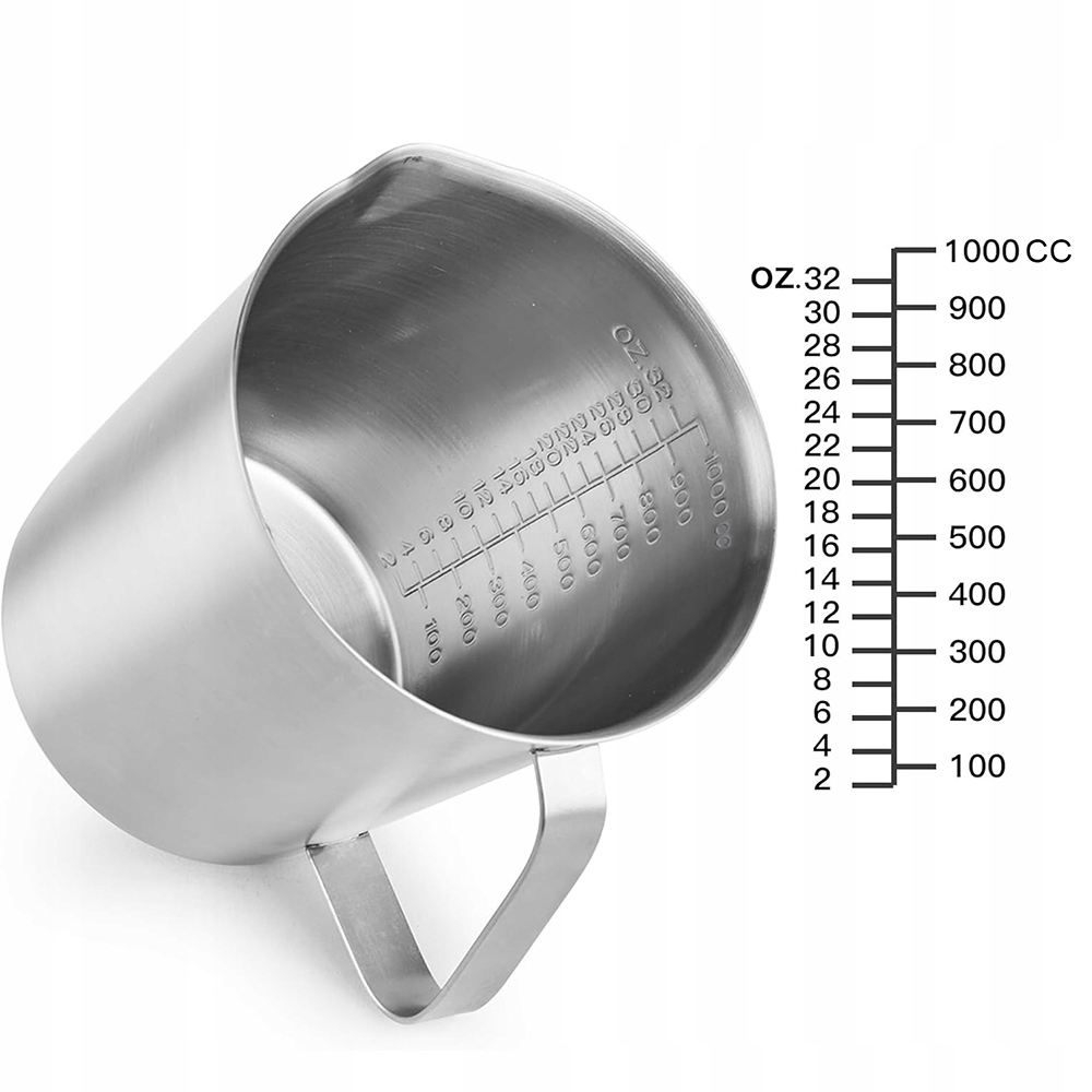 ⭐️ Мірна чашка з нержавіючої сталі місткістю 1000 мл, яку можна мити в посудомийній машині для молока, кави, латте, капучіно та макіато.