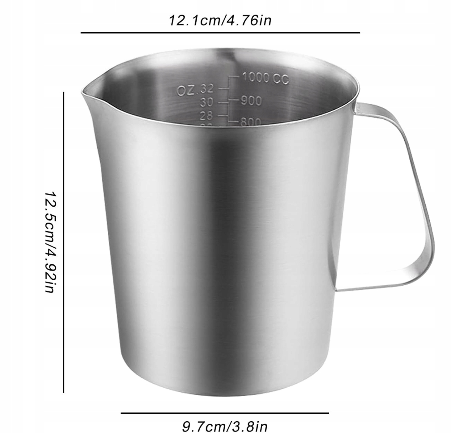 Мірна чашка з нержавіючої сталі має зручну ручку, за допомогою якої можна легко наливати молоко чи каву. Спінювач підходить для зберігання молока, кави та інших рідин, задовольняючи ваші потреби в різних випадках.