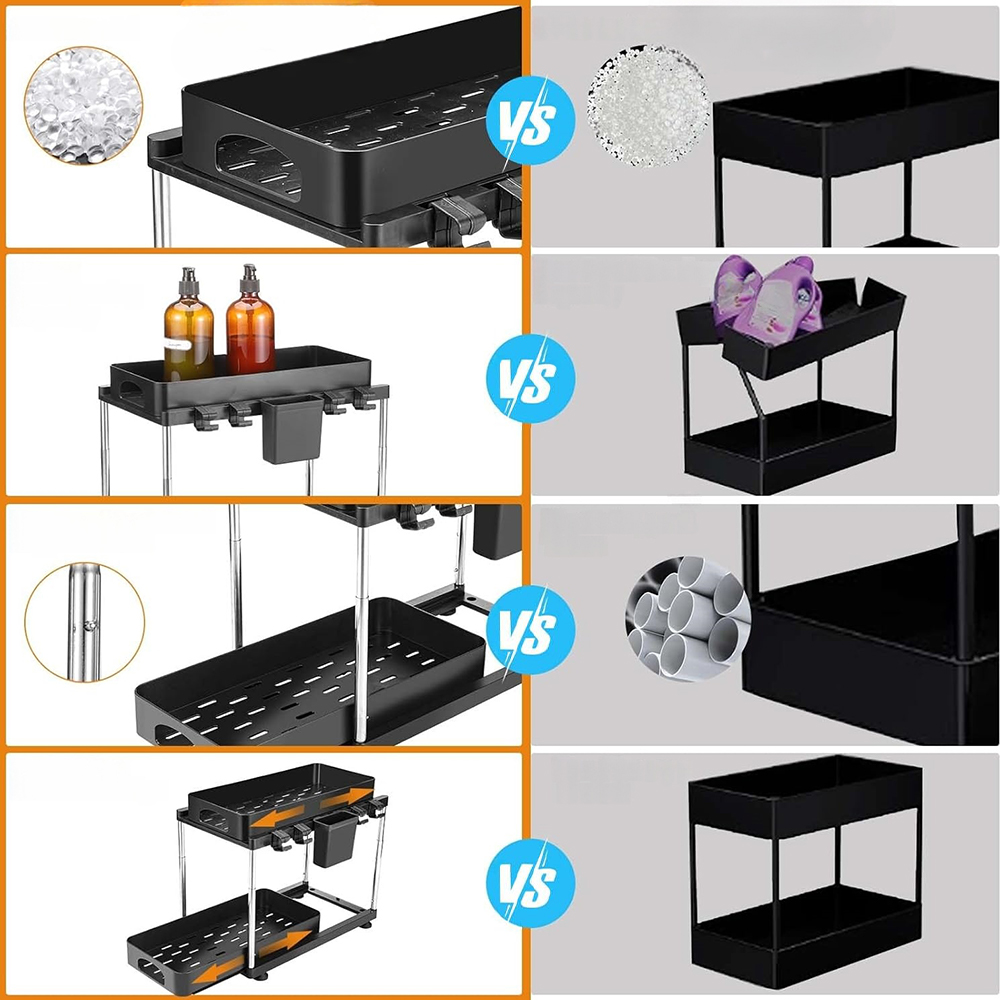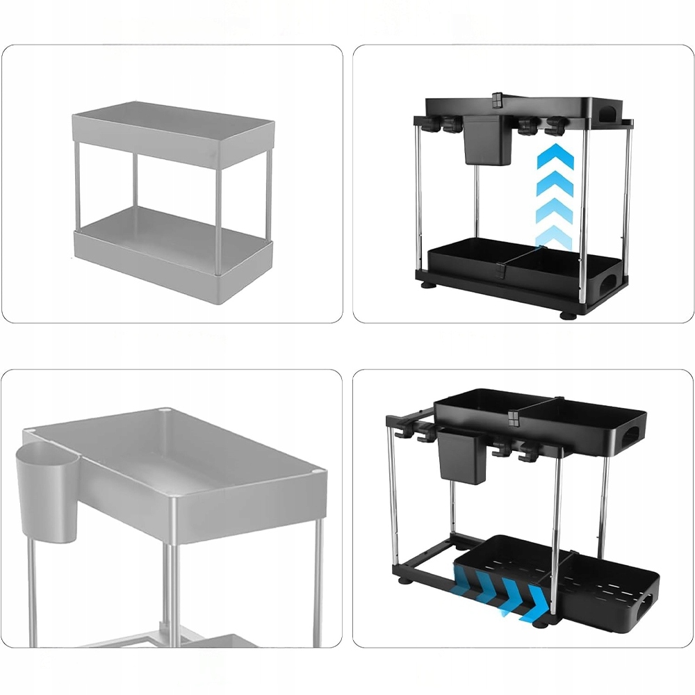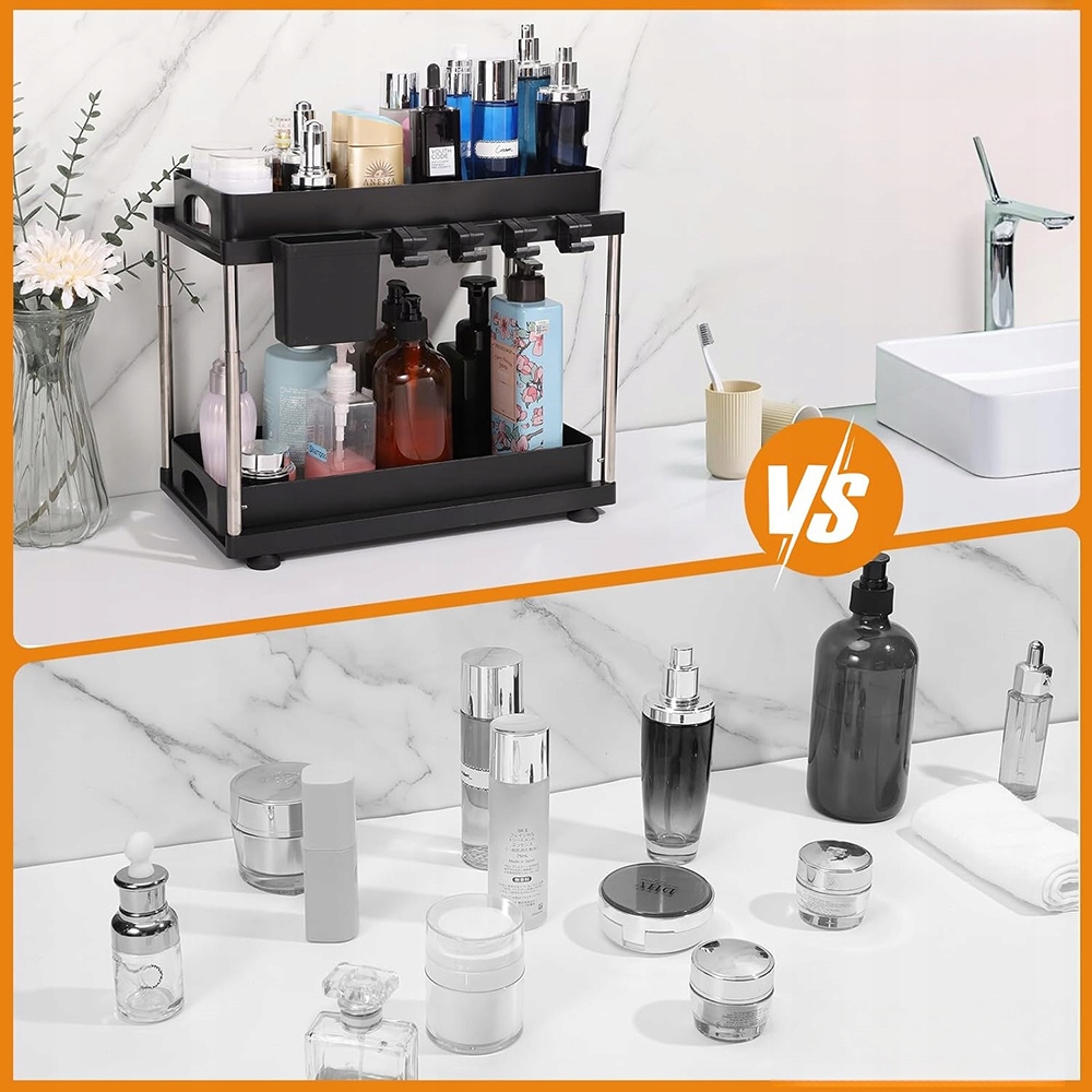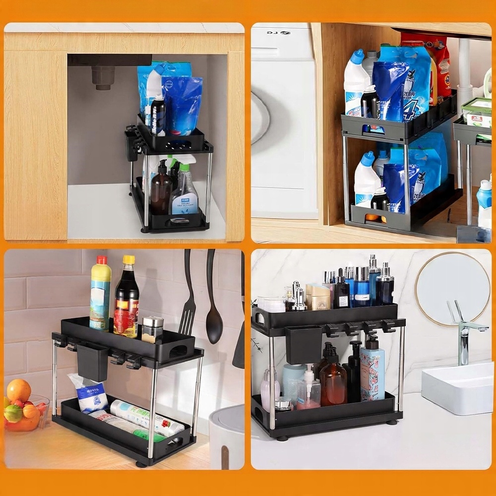 Полиця спецій буде працювати не лише як полиця під раковиною, але й може використовуватися як організатор ванної кімнати, кухонний шаф, організатор для чищення продуктів, організатор раковини та багато інших. Нехай організатор під раковиною допоможе вам зберегти свій будинок в чистоті, безпеці та порядку!