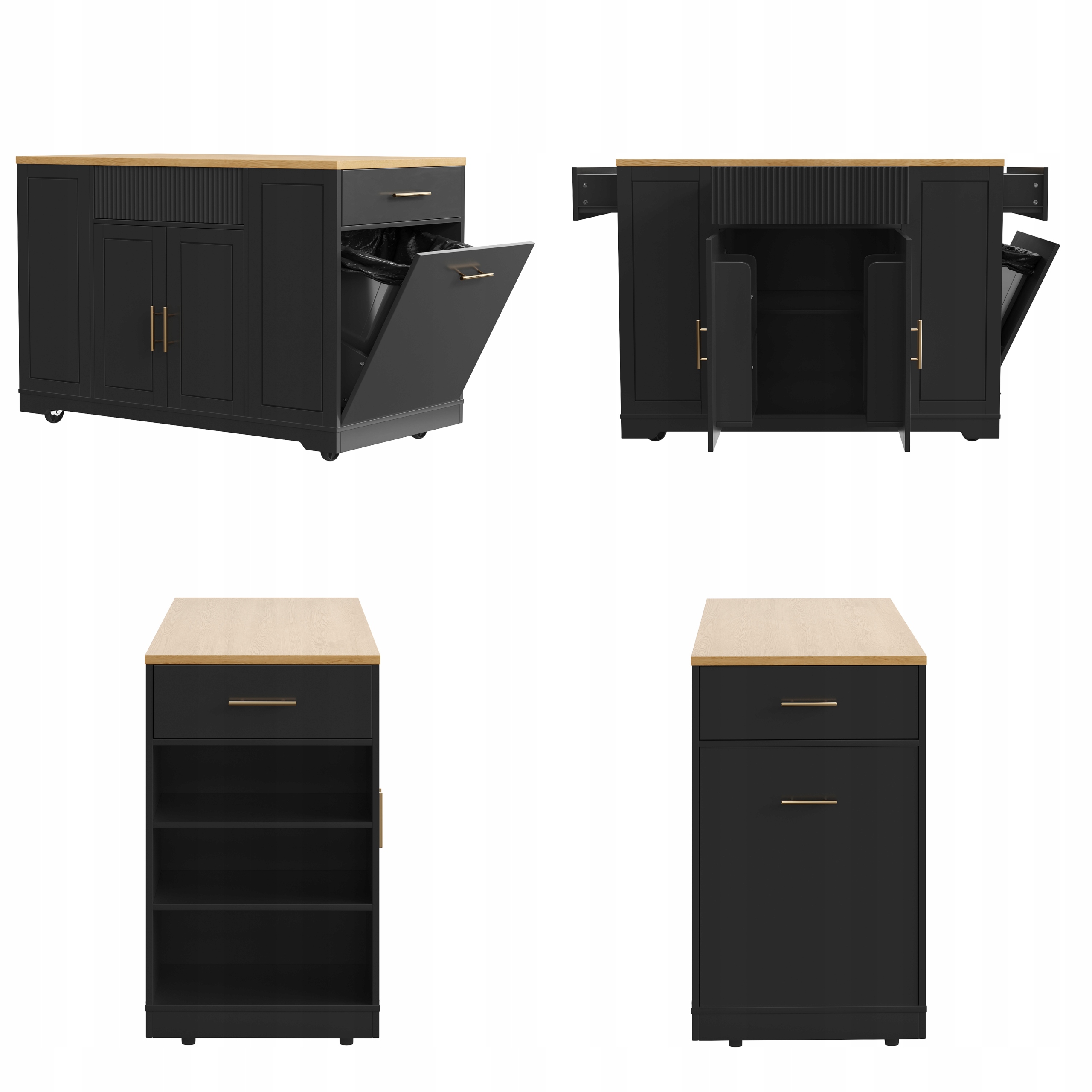 Кухонний острів, кухонний шафа, шведський стіл, 120 х 50 х 92 см, візок, що подає, мобільний кухонний острів, кухонний візок на колесах, з контейнером для сміття, регульованими поличками, двома дверима та трьома ящиками