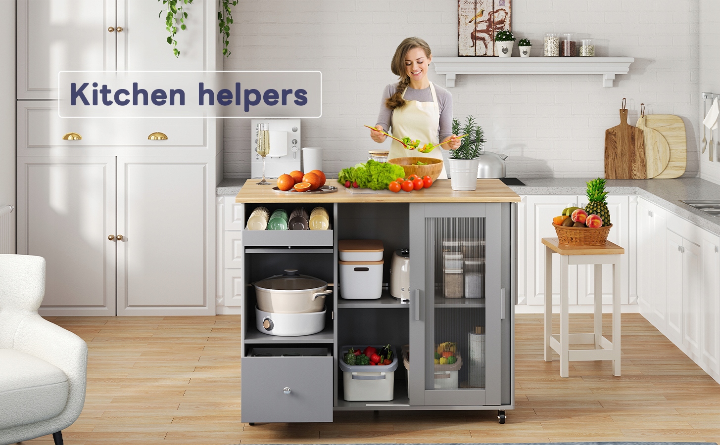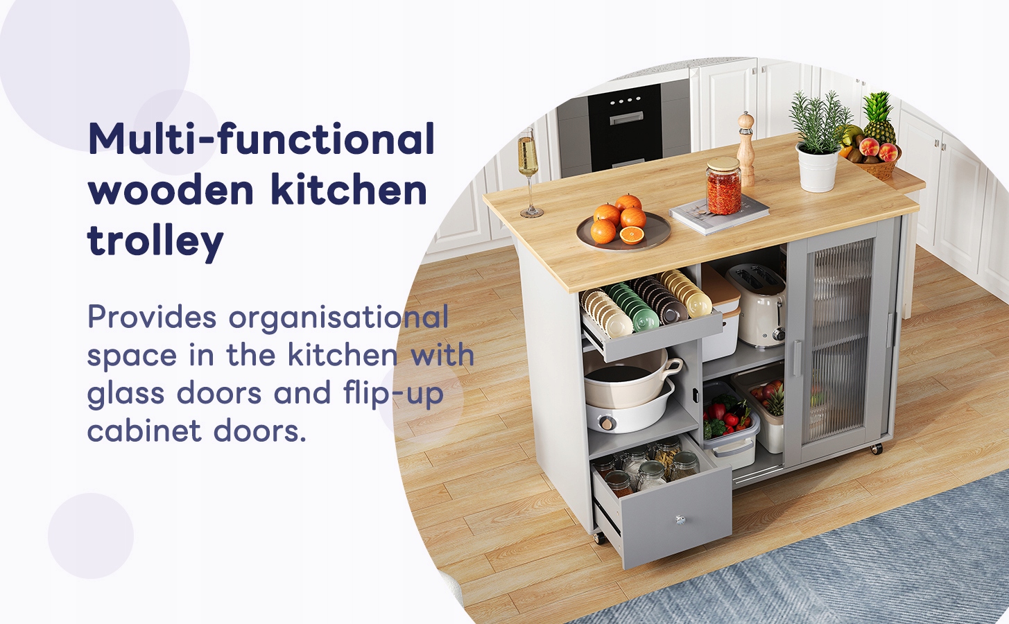 Кухонний острів, кухонний візок із загартованим склом та регульованими поличками