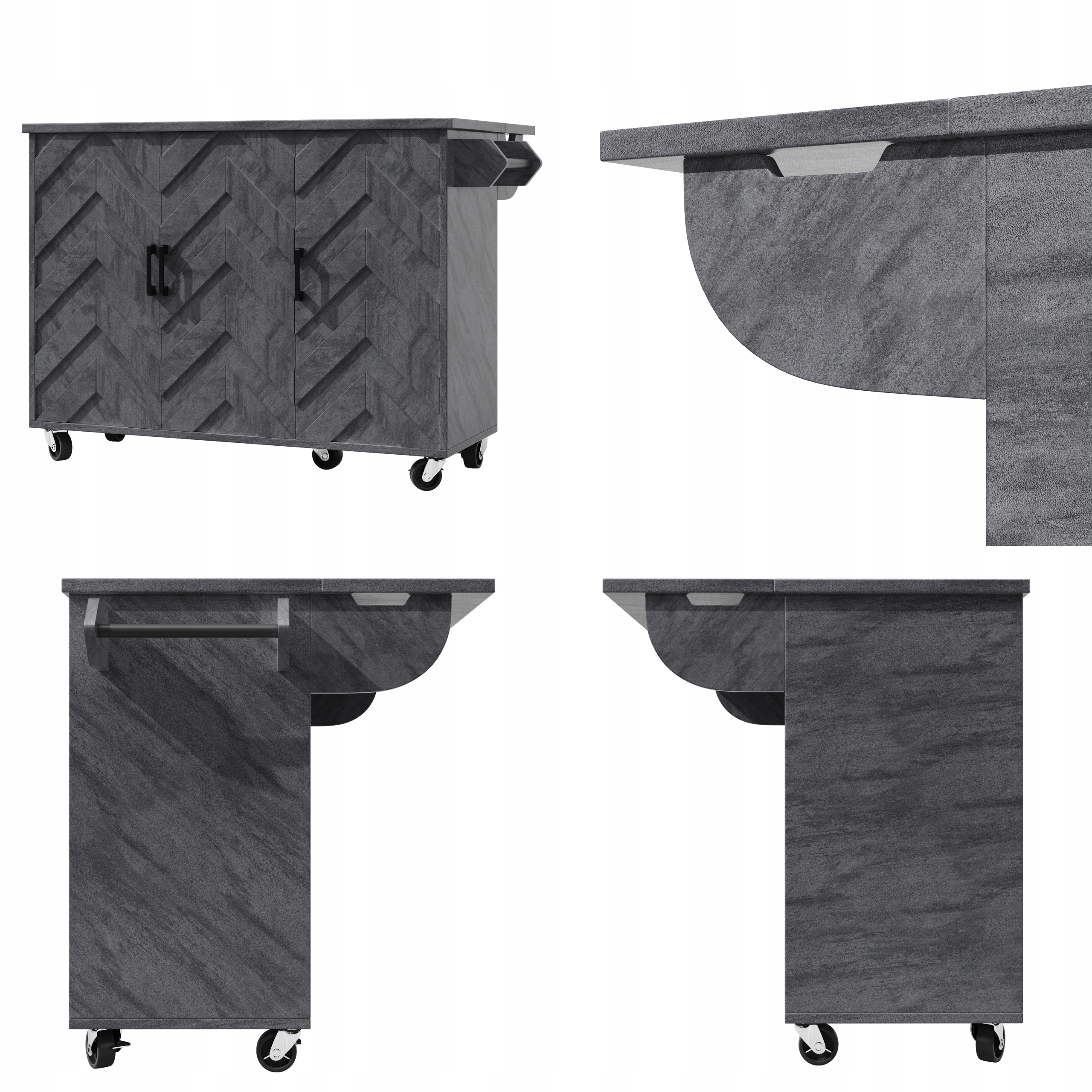 Кухонний острів, тумба-буфет, 118*45(75)*92 см, візок сервізний, пересувний кухонний острів, складаний кухонний візок на колесах, з вішалкою для рушників та дверною полицею, регульованими полицями, трьома ящиками