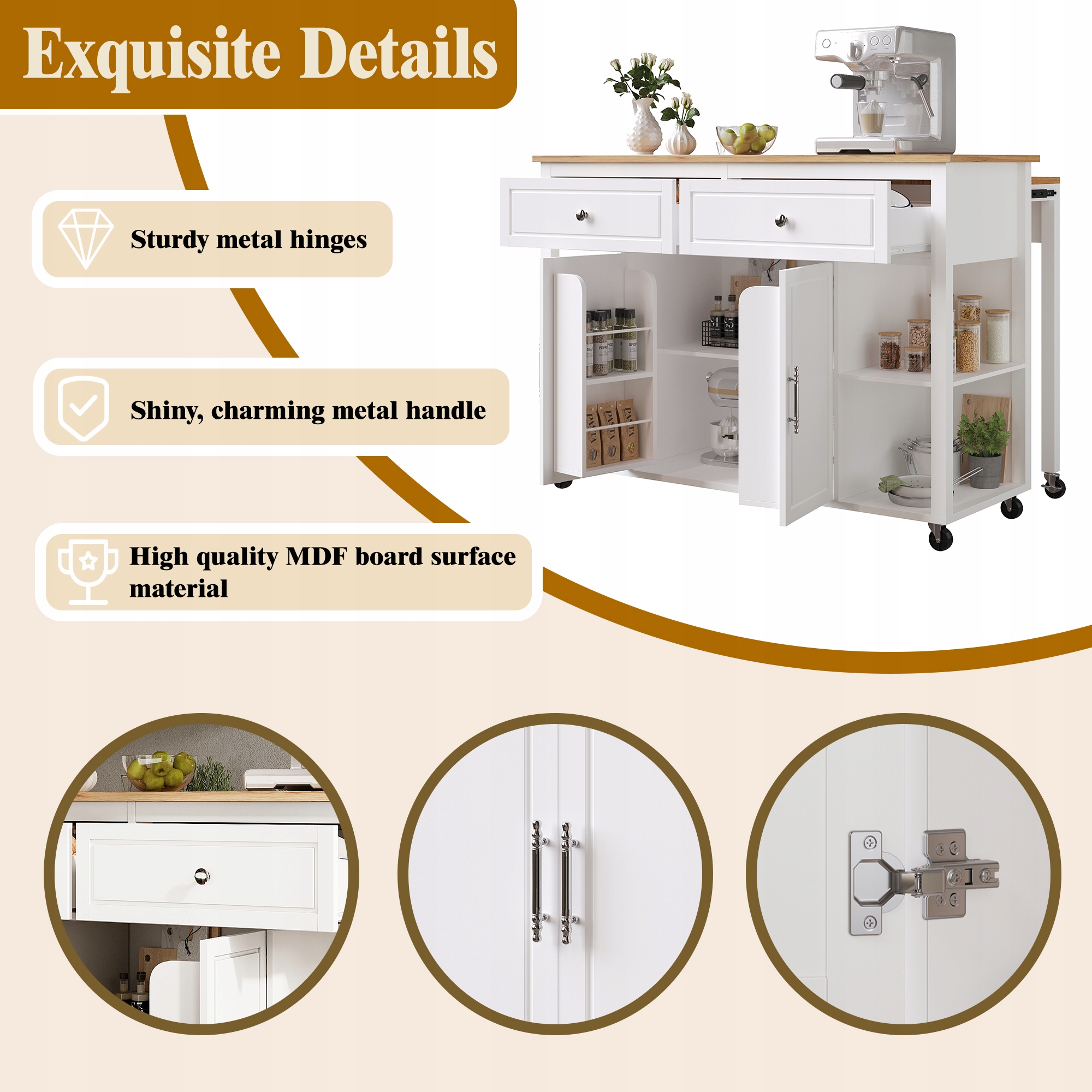 Високоякісний кухонний острів з колесами, багатофункціональний сервірувальний візок з дерев’яним зерном і великим простором для зберігання, 2 ящиками та гальмами, кухонний візок для їдальні, вітальні, кухні