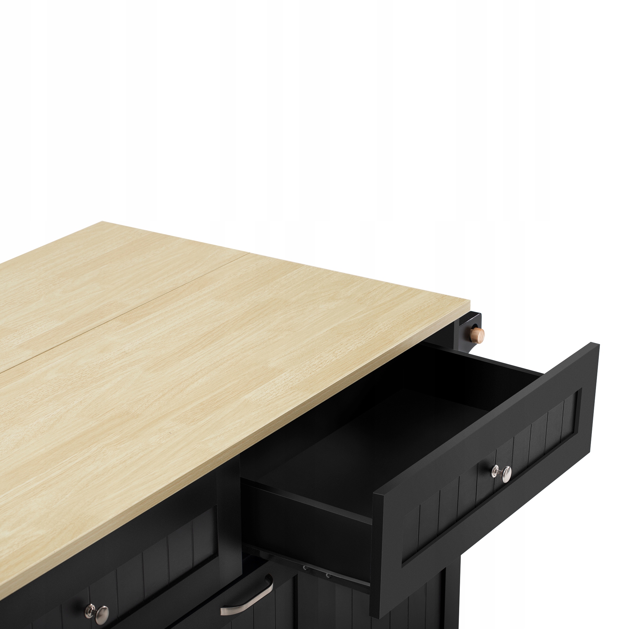 Кухонний острів на колесах, розсувний кухонний острів з обідньою зоною та багатофункціональними ящиками, мобільний кухонний острів, ідеальний для кухні та їдальні (чорний)