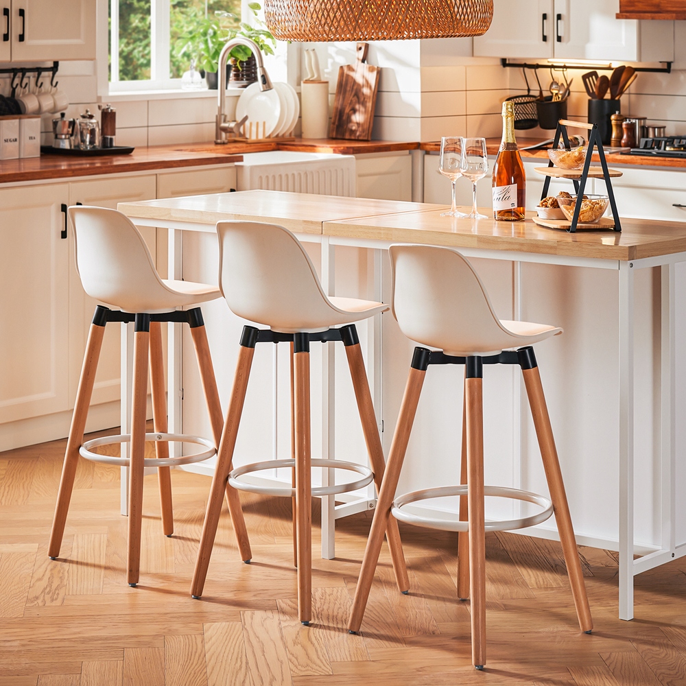 Цей універсальний кухонний острів є ідеальним поєднанням функціональності та естетики. Оснащений чотирма відкритими полицями, місткою шафою і широкою стільницею кольору натурального дерева, його можна використовувати як барний стіл або кухонний візок. Довжина 170 см і ширина 60 см забезпечують достатньо місця для приготування їжі, спільного сніданку або роботи на кухні. Полиці за дверцятами можна регулювати на три висоти, що збільшує гнучкість використання. Цей сучасний острів на колесах ідеально вписується в скандинавський стиль, а завдяки міцній конструкції він прослужить роками.