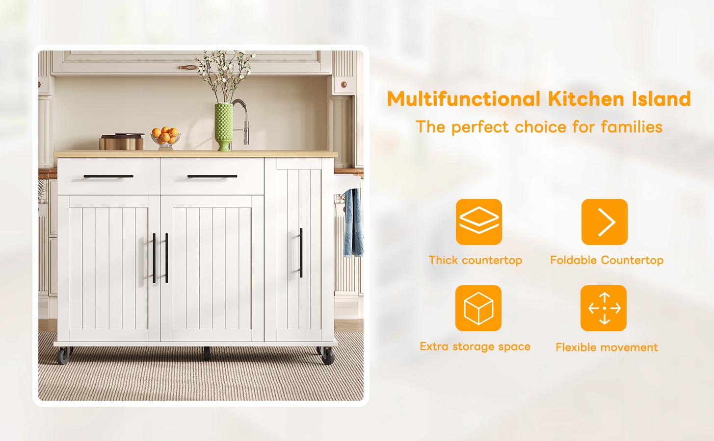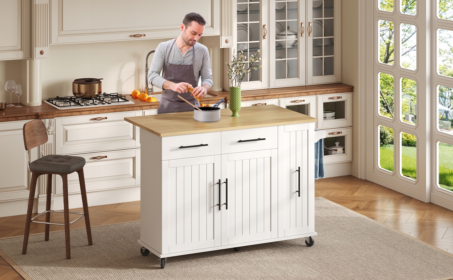 ✅ [Мобільний кухонний острів] Наш мобільний кухонний острів на колесах має п'ять рухомих універсальних коліс, чотири в нижніх чотирьох кутах і один у центрі. Це дозволяє вільно рухатися та забезпечує стабільність дорожнього руху. Два колеса заблоковані, тому їх можна зупинити та забезпечити в будь -який час. Збільште свій комфорт під час використання в кімнатах.