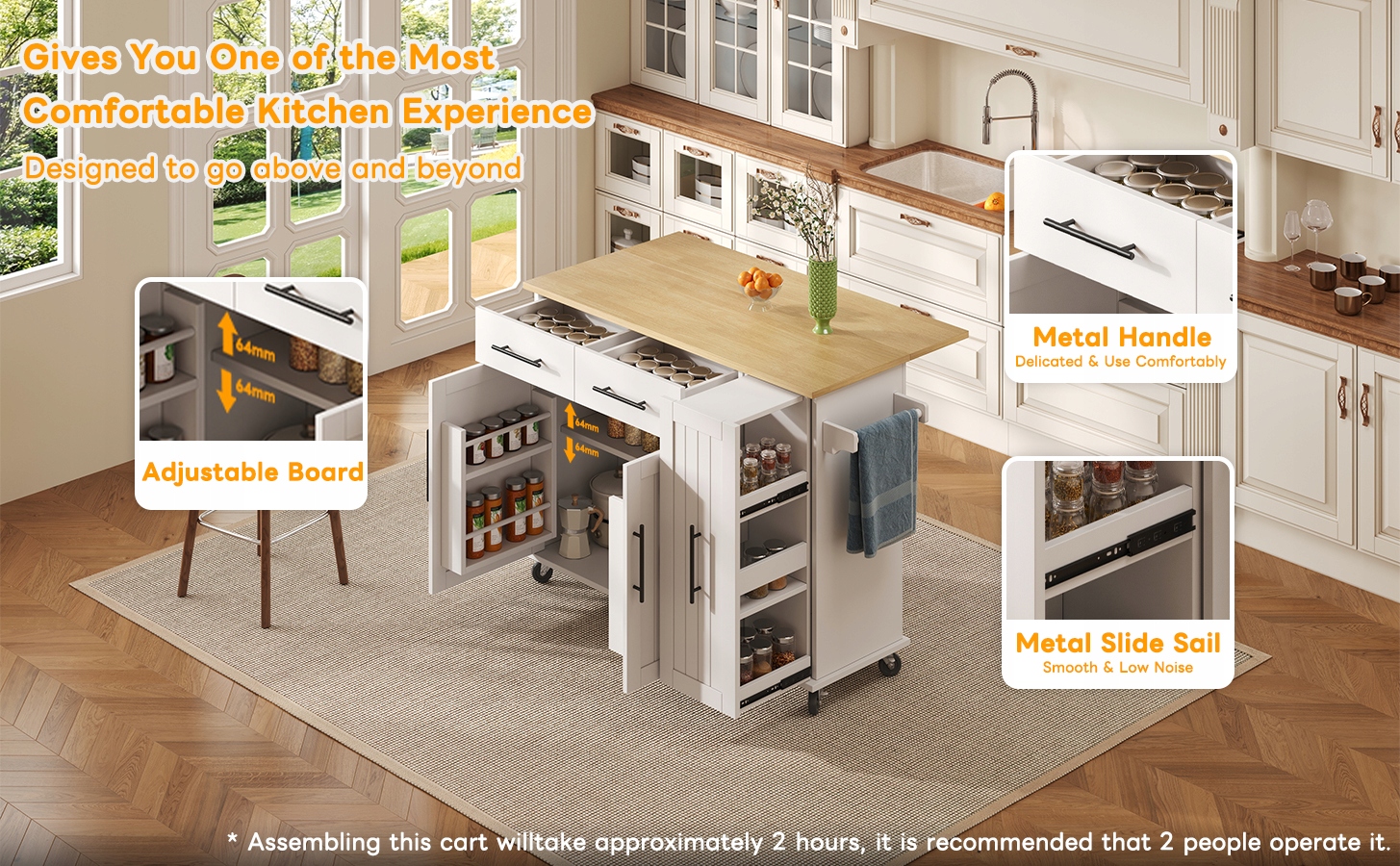 ✅ [Зручний складний лист] Накладка цього кухонного острова оснащена складеним листом. Якщо у вас не вистачає місця, ви можете відкрити його, щоб отримати більшу робочу поверхню, щоб ви могли поставити більше речей на стільницю та збільшити простір для зберігання. Звичайно, ви також можете зібрати його, коли він не потрібен, а підтримувати його до стіни чи кута - чудовий варіант зберігання.