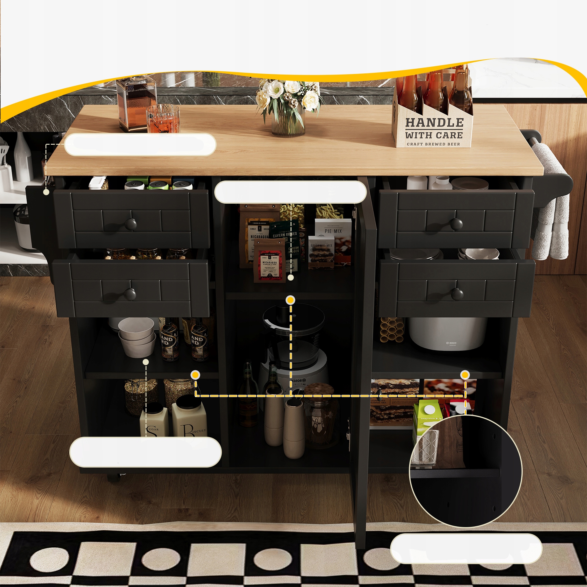 Бічні полиці додатково збільшують простір для зберігання, що дозволяє зберігати часто використовувані предмети, такі як продовольча фольга, паперові рушники та пляшки спецій, забезпечуючи легкий доступ. Бічні полиці стратегічно розташовані для підтримки естетики острова, повністю використання місця та полегшення зберігання. Вершник для рушників забезпечує зручне місце для рушників, що дозволяє висушити руки після приготування їжі чи їжі, зберігаючи їх чистими та сухими, що збільшує комфорт використання. Окрім зберігання рушників, ви також можете повісити на них невеликі аксесуари для чищення, збільшуючи функціональність візки.