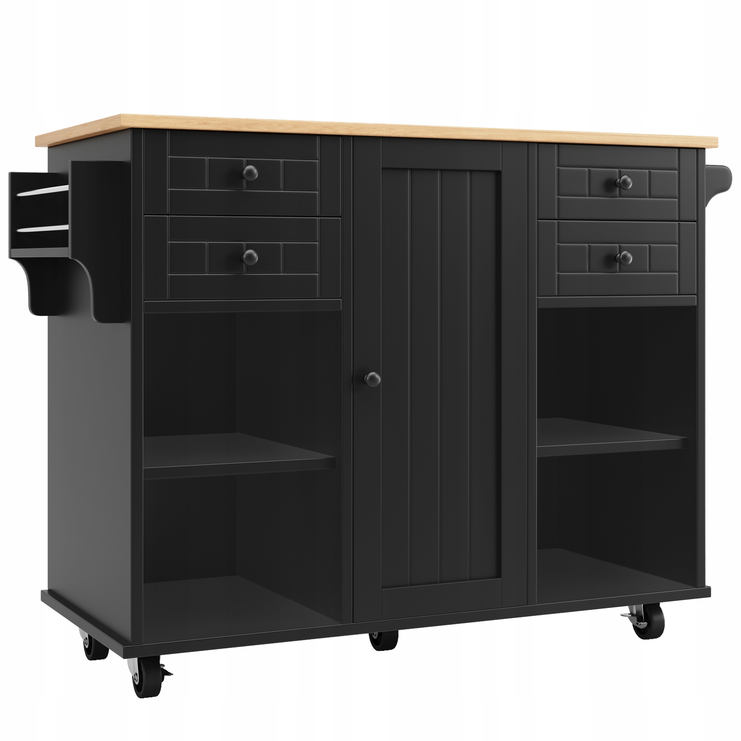 Кухонний острів з шафою та колесами Чорні дерев’яні банки 127 × 46 × 91 см