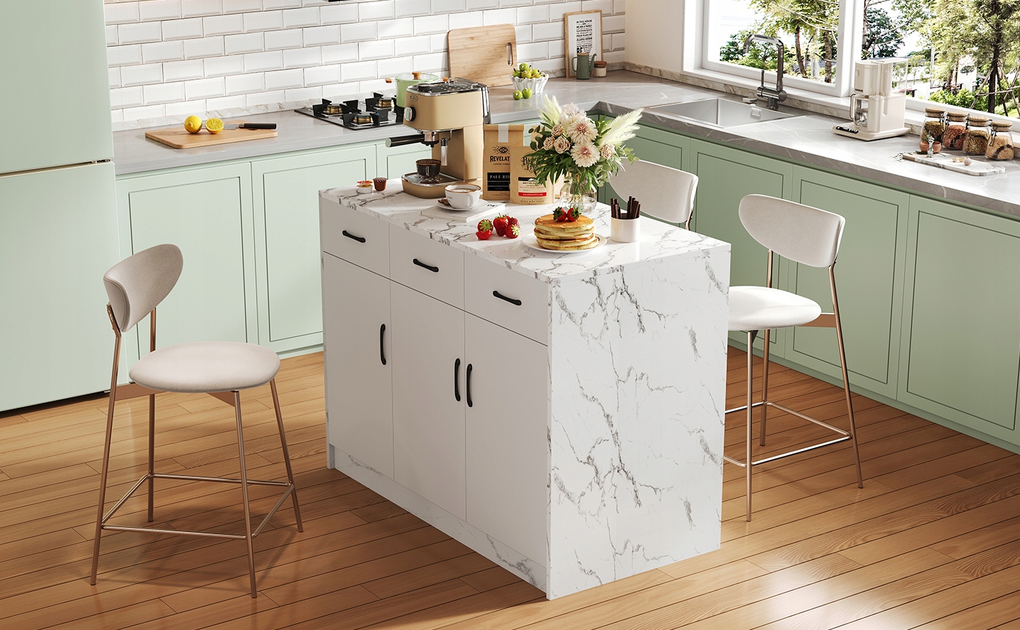 інтегрована барна зона для виживання: 26 см глибиною на задній частині кухонного острова ідеально підходить для розміщення барних стільців, щоб забезпечити комфортне сидіння під час щоденних страв чи соціальних зборів. Завдяки цьому ваш кухонний острів перетворюється не лише у функціональний простір, але і на дружнє місце для родини та друзів.
