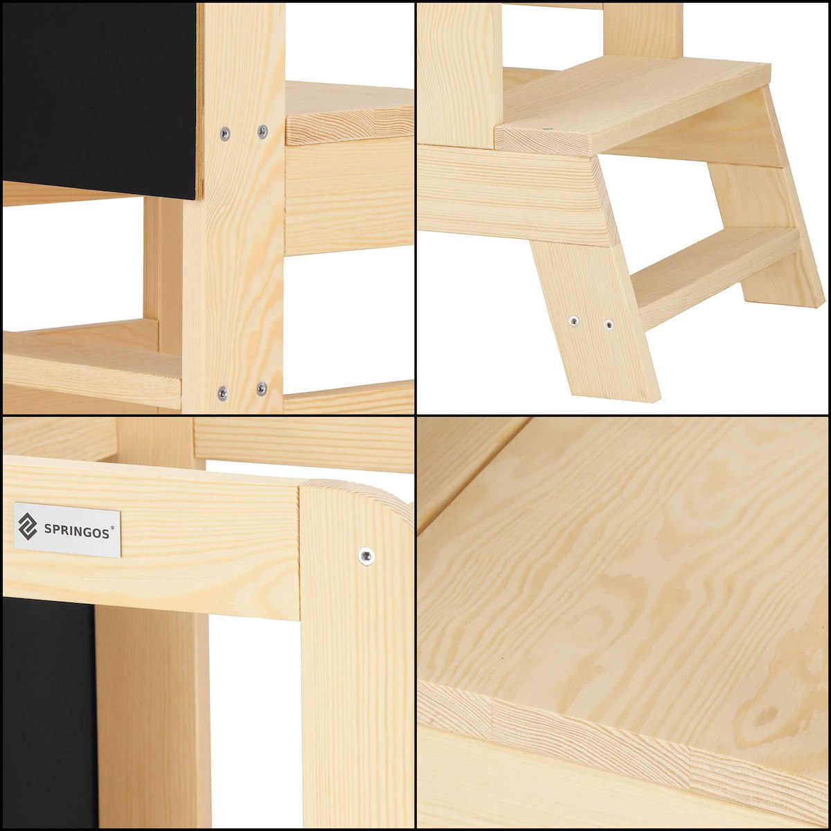 Kitchen Helper від Springos® є ідеальним продуктом для дітей, яким сподобається допомагають батькам на кухні, а до стільниці ще не доходять. Ця платформа дозволяє вам розвивати свою пристрасть до кулінарії та ентузіазм допомагати дорослим з раннього віку.