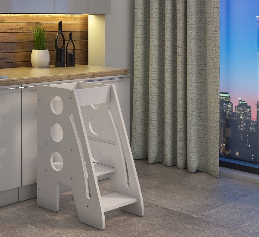 - КУХОННИЙ ПОМІЧНИК виготовлений з МДФ плити товщиною 18 мм. Меблі виготовлені за найвищими стандартами, що гарантує тривале використання. Регулювання платформи означає, що вона прослужить вашій дитині довше.