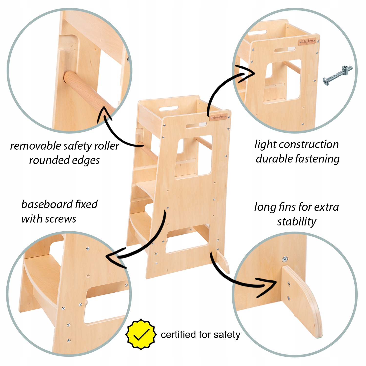 Діти люблять брати участь у приготуванні страв, склеювати їх, розкладати - це для них велика розвага! Kitchen Helper дозволяє їм відчути себе справжніми кухарями, безпечно стоячи на потрібній висоті. Завдяки цьому ваша дитина може бути ближче до вас на кухні, навчаючись новим навичкам і будуючи зв’язок між батьками та дитиною.