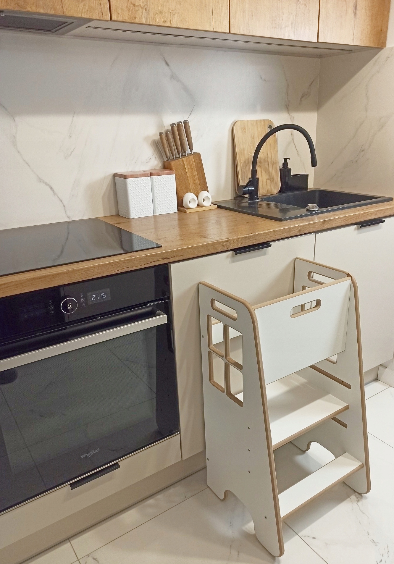 потрібно на кухні кожної дитини! Функціональний та естетичний кухонний помічник ( кухонний помічник як приготування, спалювання чи прибирання. Це чудова можливість вивчити та побудувати спільні спогади. Виготовлений з ламінованого МДФ з товщиною до 18 мм з армованою структурою (так звана глибока фрезерна пластина)