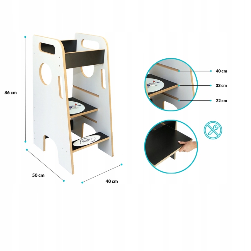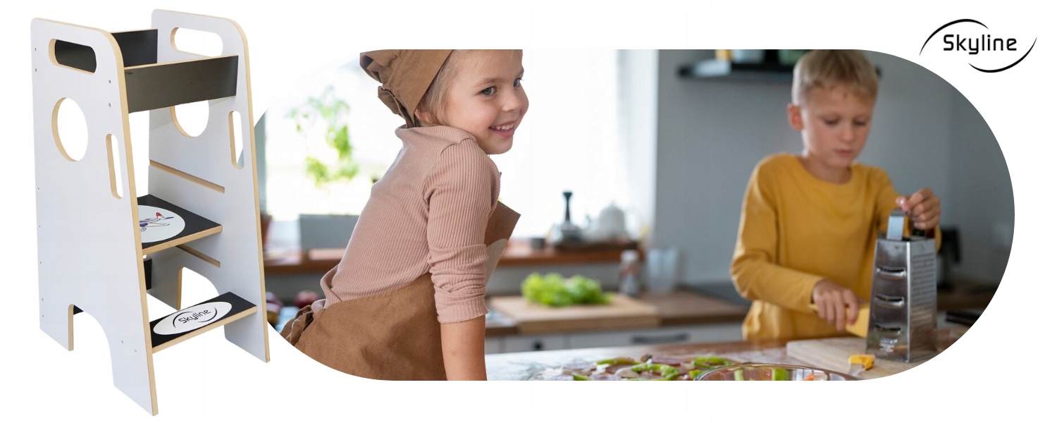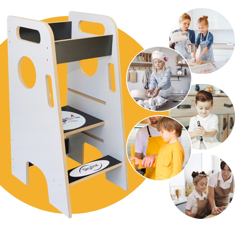 його дизайн дозволяє дітям безпечно брати участь у щоденних кухонних заходах у розпал стільниці, що сприяє їх незалежності та розвитку практичних навичок.