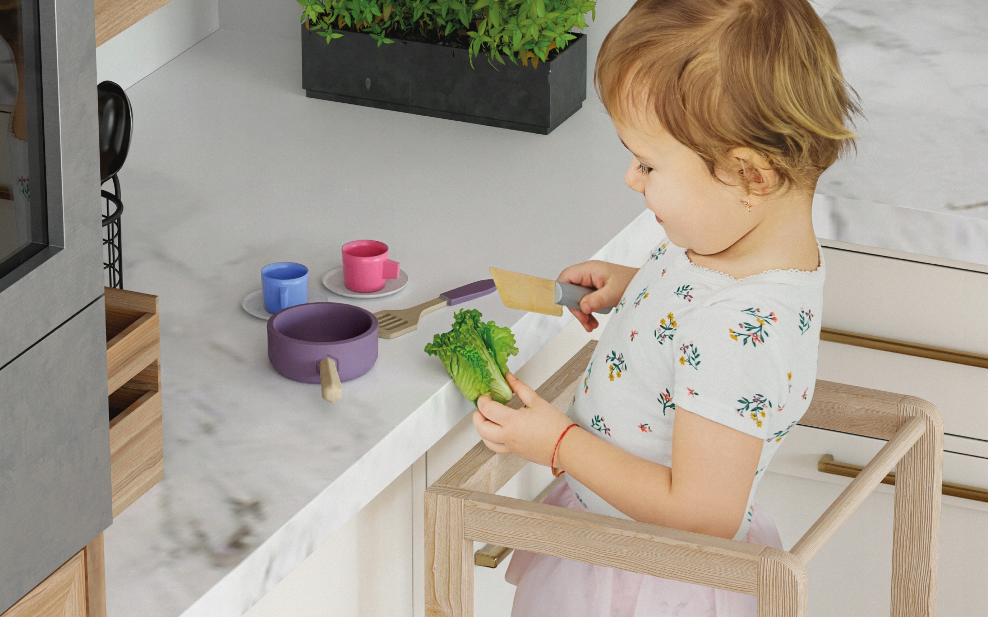 Кухонний помічник Tasty 20 — ідеальне рішення для відкриття секретів кухні разом із вашою дитиною. Це дозволяє наймолодшим активно та безпечно брати участь у приготуванні їжі. Це, у свою чергу, вчить дитину незалежності, допомагає їй звикнути до нових смаків, розвиває звички здорового харчування та, перш за все, створює особливі моменти разом.