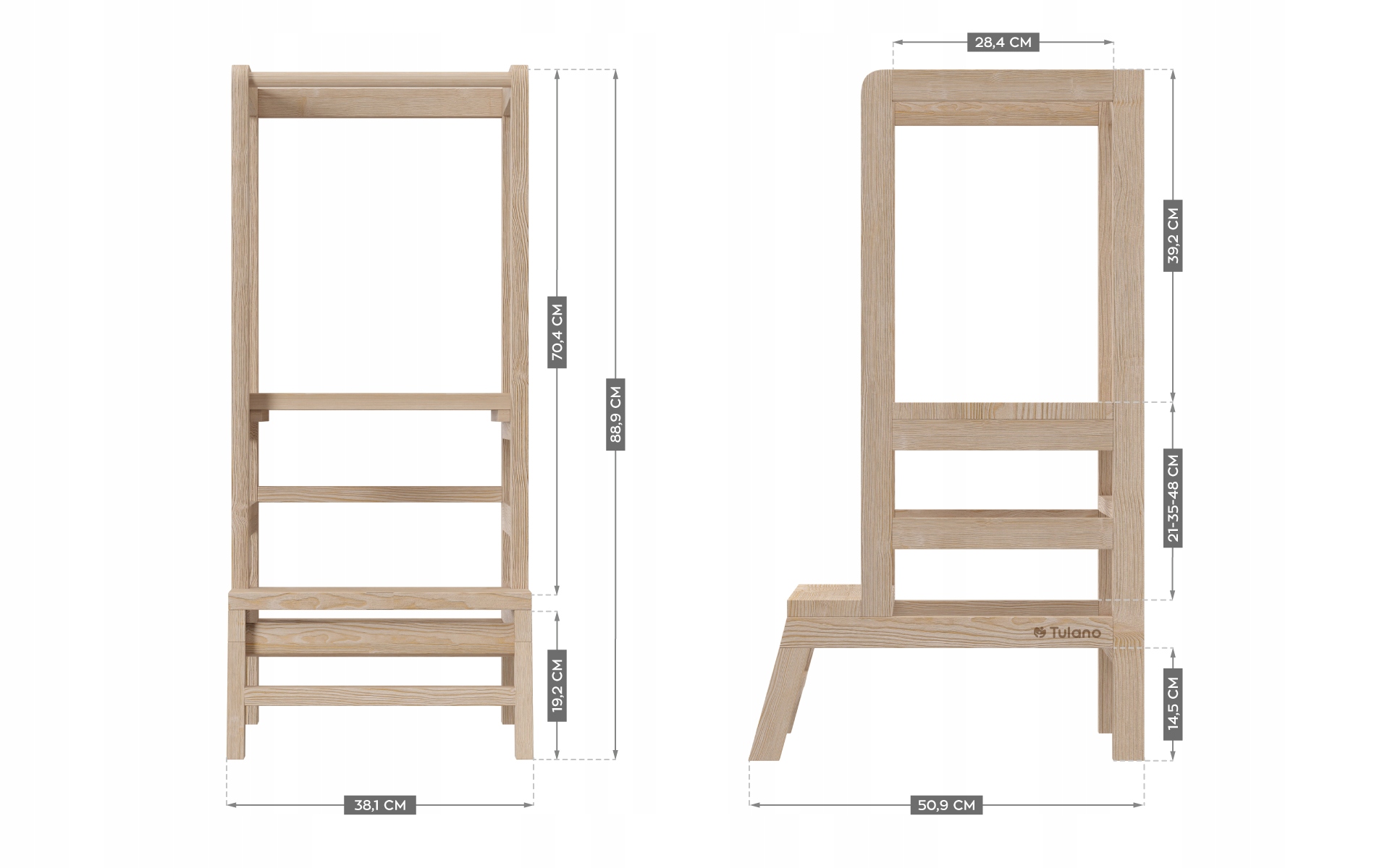 - 3-ступеневе регулювання висоти платформи: 21 / 35 / 48 см дозволяє кухонному помічнику рости разом з дитиною.