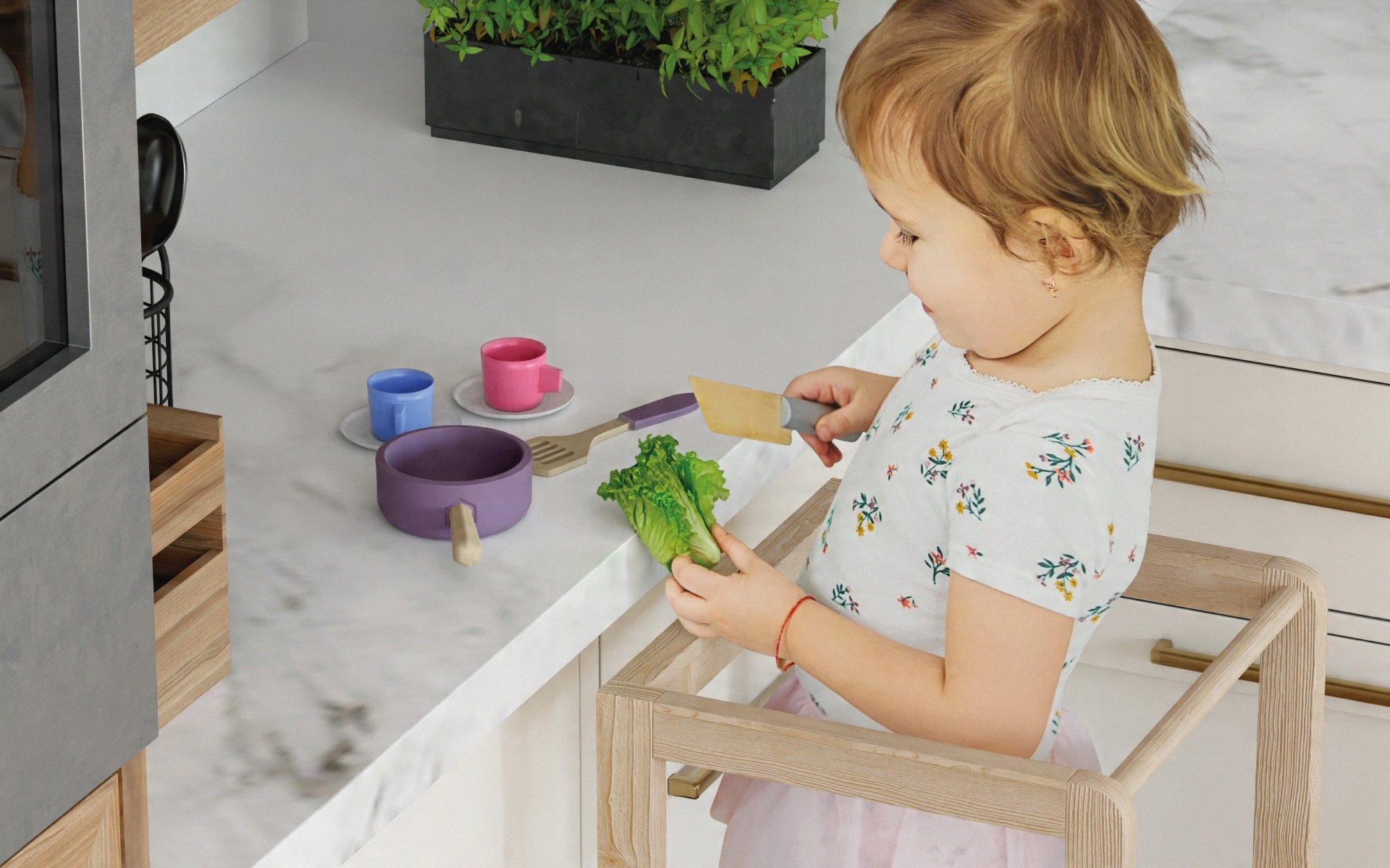 Кухонний помічник, незважаючи на назву, працюватиме не тільки на кухні. Безпечний дизайн дозволяє наймолодшим пізнавати світ і здобувати нові навички без обмежень, пов’язаних із зростанням. Tasty 20 полегшить малюкові мити руки, зуби чи поливати квіти.