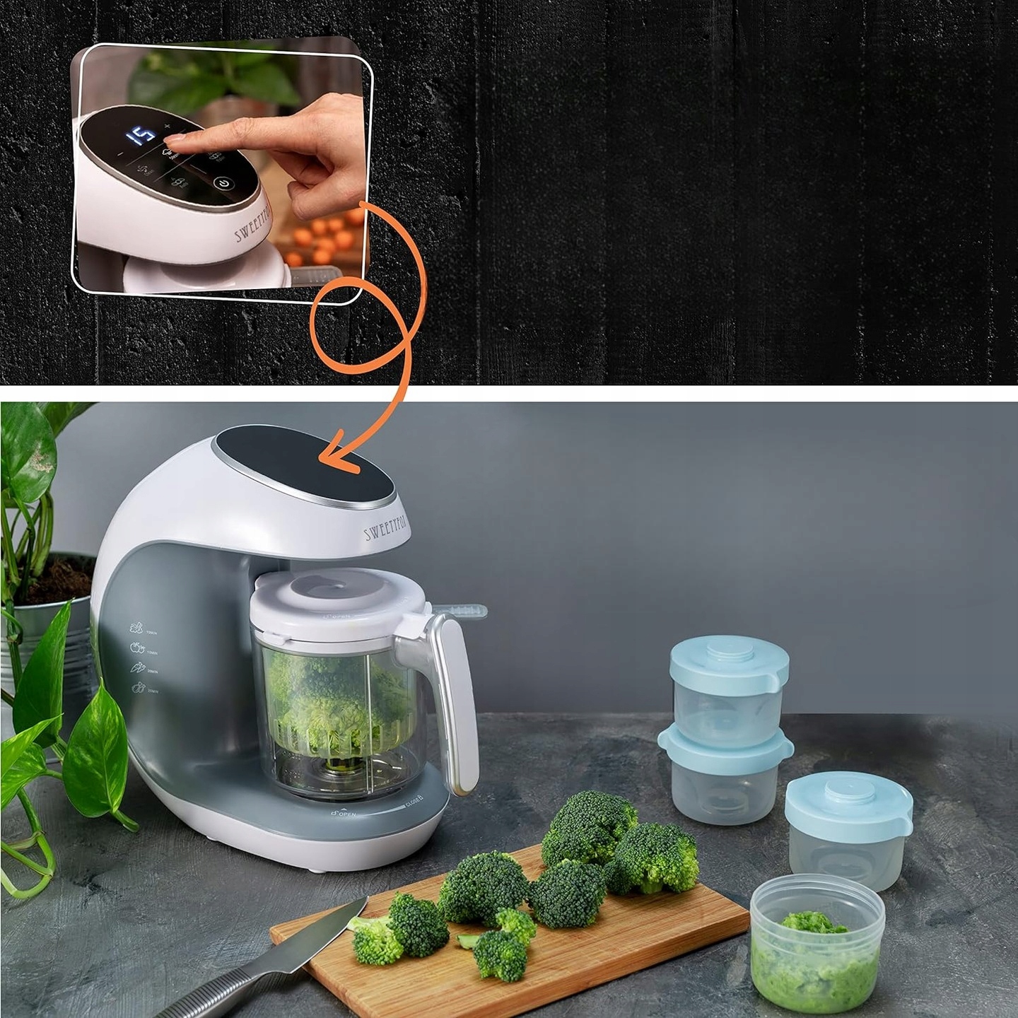 - Прилад для приготування дитячого харчування 7 в 1 від Sweety Fox дозволяє самостійно готувати їжу для дітей. Нагрівач має 7 попередньо запрограмованих функцій: приготування на пару, розморожування, стерилізація, пюре, функція пульсування, автоматичне очищення.