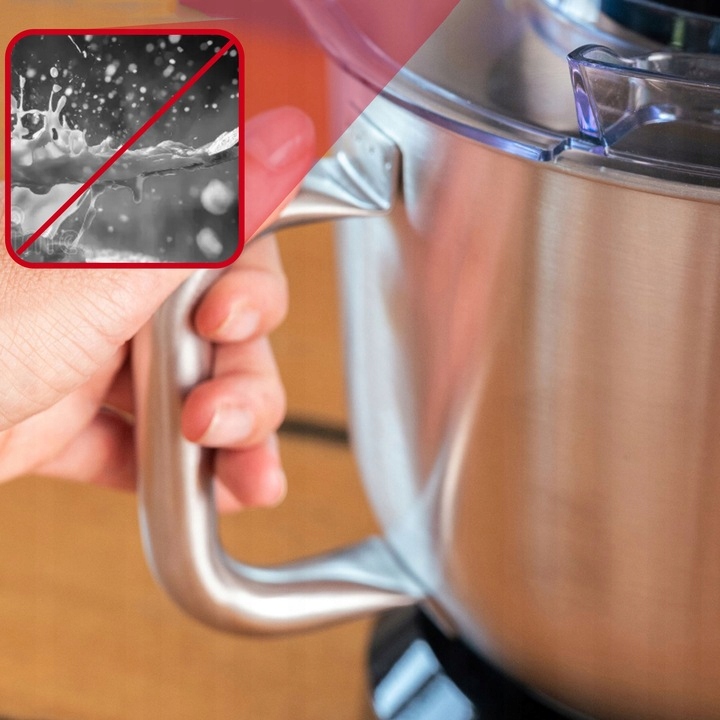 ➡️ Робот оснащений металевою чашею об'ємом 5 літрів з практичною ручкою. Вона дозволяє готувати більші порції тортів, кремів і мас, а надійний хват полегшує безпечне перенесення та розливання. вміст без ризику. розливи – ідеальне рішення для сімей та зустрічей з коханими.