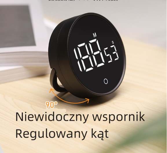 Електронний таймер F5 з функцією STOPWATCH має магніти, які дозволяють повісити пристрій, наприклад, на холодильнику або магнітній дошці. Магніти настільки сильні, що пристрій не буде ковзати вниз по інших металевих предметах. Магніти покриті еластичними смугами, що не належать до сліпу, які запобігають випадковому зміщенню таймера. Таймер з невидимим підставкою, стоячи, регульований кут 0-90 °。