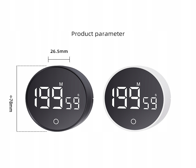 Електронний таймер - це пристрій, який буде корисним у багатьох ситуаціях, таких як приготування їжі, вправи в тренажерному залі, виконання домашніх завдань, презентацій та багатьох інших. Наш незамінний обертовий таймер F5 дозволяє встановити значення для вирахування в точність до 1 секунди та вирахування секунд з нуля. Максимальний час, який може досягти пристрою, становить 199 хвилин і 59 секунд.
