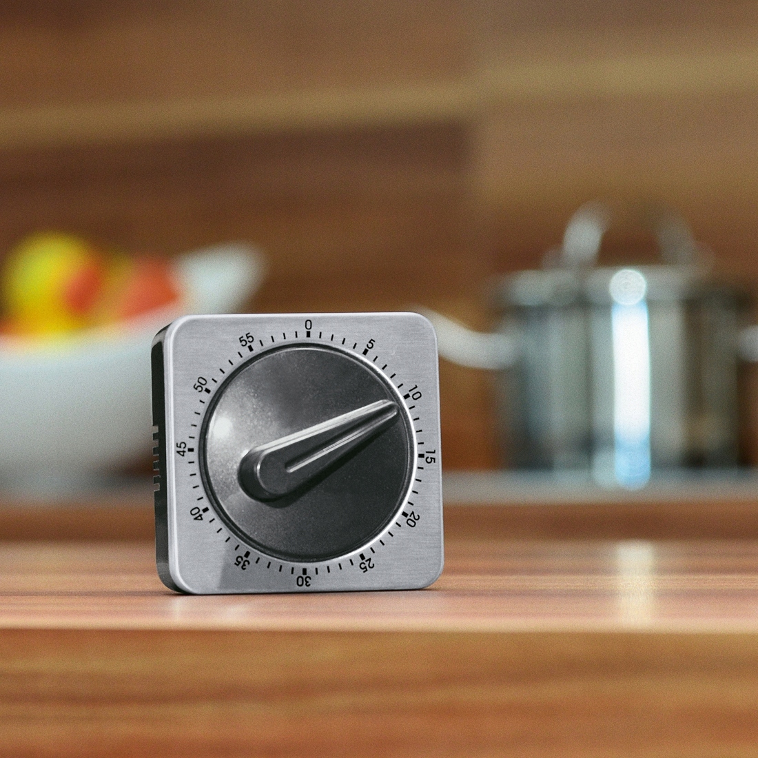 Отримайте союзника на кухні у вигляді таймера. Хвилинна шкала (до 59 хвилин) вибирається за допомогою поворотного механізму, а чіткий дзвін нагадує про готовність страви. Це найпростіший і найшвидший спосіб зворотного відліку.