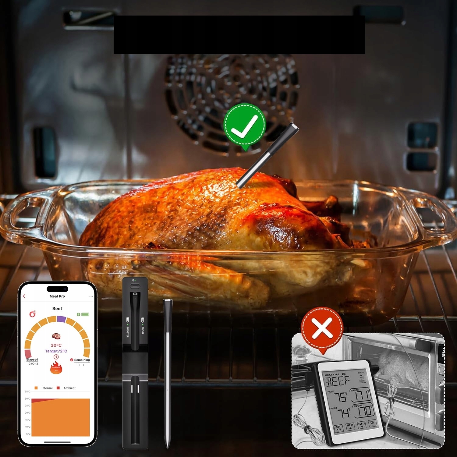 Свобода пересування: підключений через Bluetooth, цей бездротовий термометр для гриля може контролювати приготування на відстані до 10 м, тобто ви можете контролювати температуру м’яса будь-де – біля басейну, вдома приготування гарнірів у будь-якому місці!
