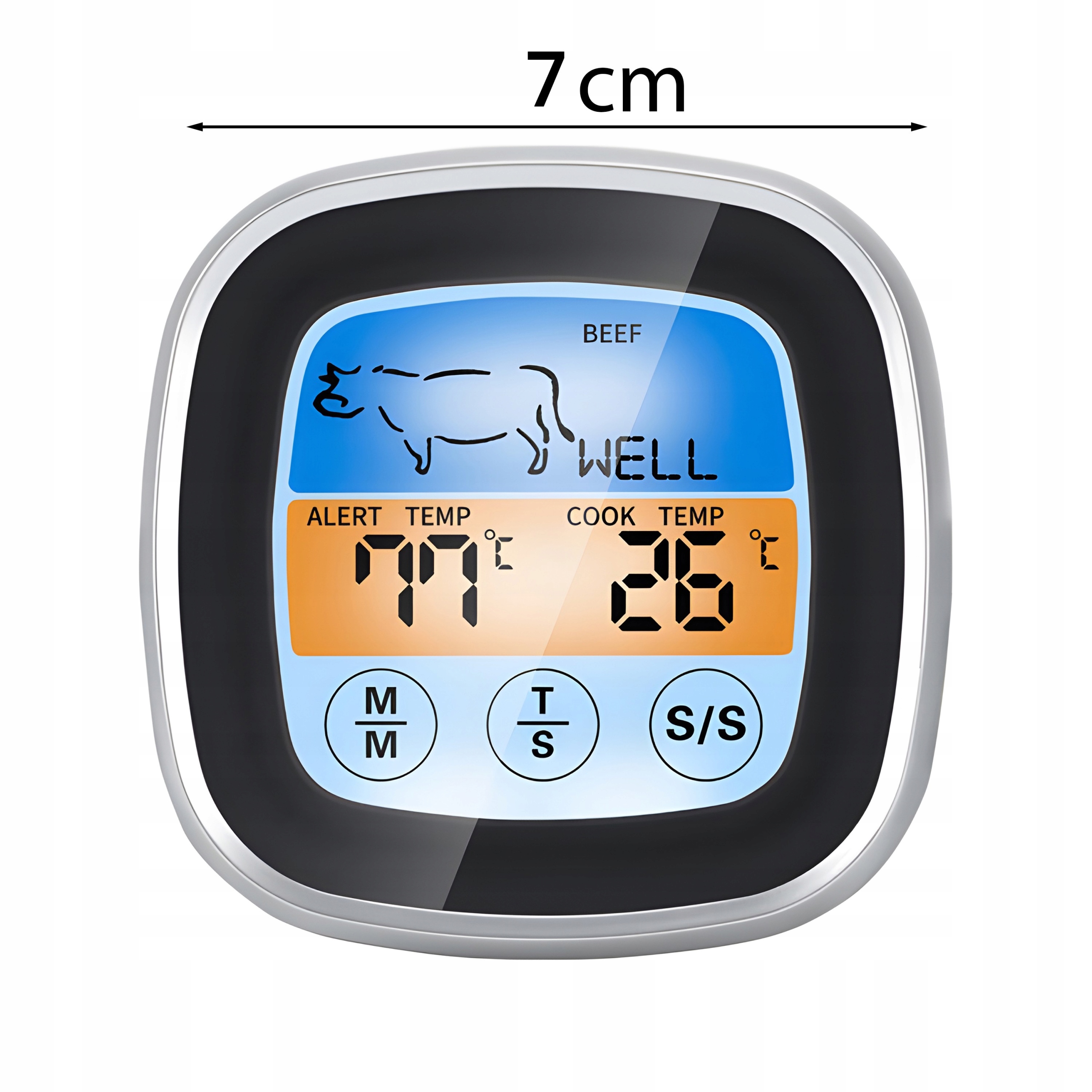 Можливість встановити будильник від 59 секунд до 99 хвилин означає, що ви не забудете про страву, яку готуєте. Термометр і таймер в одному пристрої забезпечують точний контроль часу приготування. Завдяки цьому ви можете бути впевнені, що кожна страва буде ідеально приготовлена, без ризику підгоріти або недоваритися. Це зручне та практичне рішення для кожного кулінара.