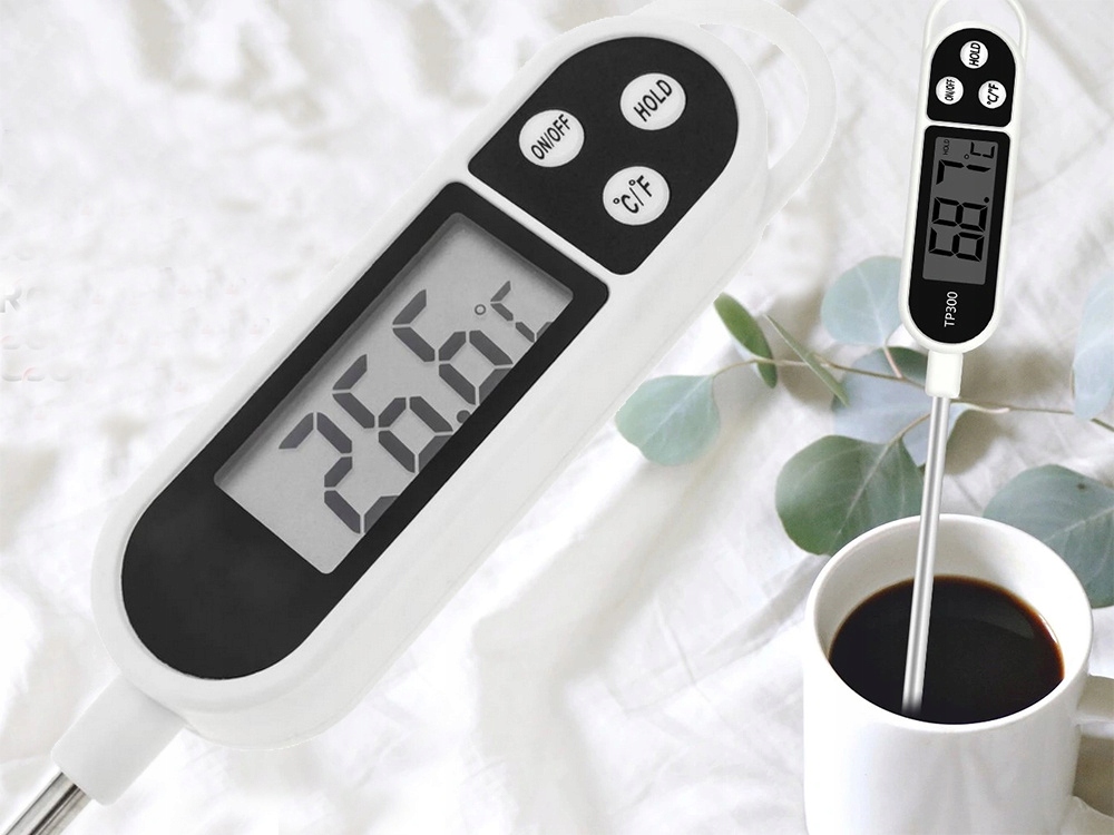 Електронний РК-термометр використовується для вимірювання температури м'яса, рідин, тортів, гриля тощо. Він дозволяє зручно контролювати температуру будь-якого продукту. Ідеально підходить на кухні під час готування, щоб перевіряти температуру приготовленої їжі.