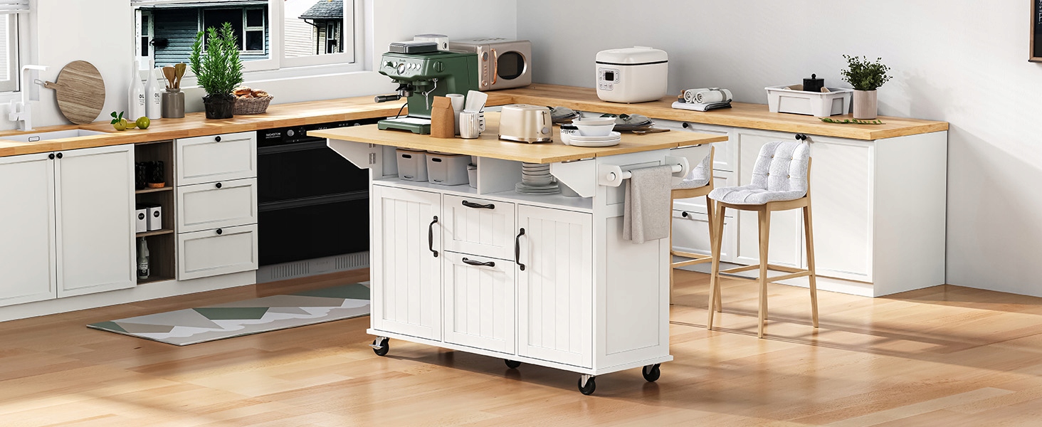 Зручний розкладний тримач для рушників і п’ять поворотних коліщаток, два з яких замикаються, забезпечують як щоденну зручність, так і легке пересування по кухонному простору.