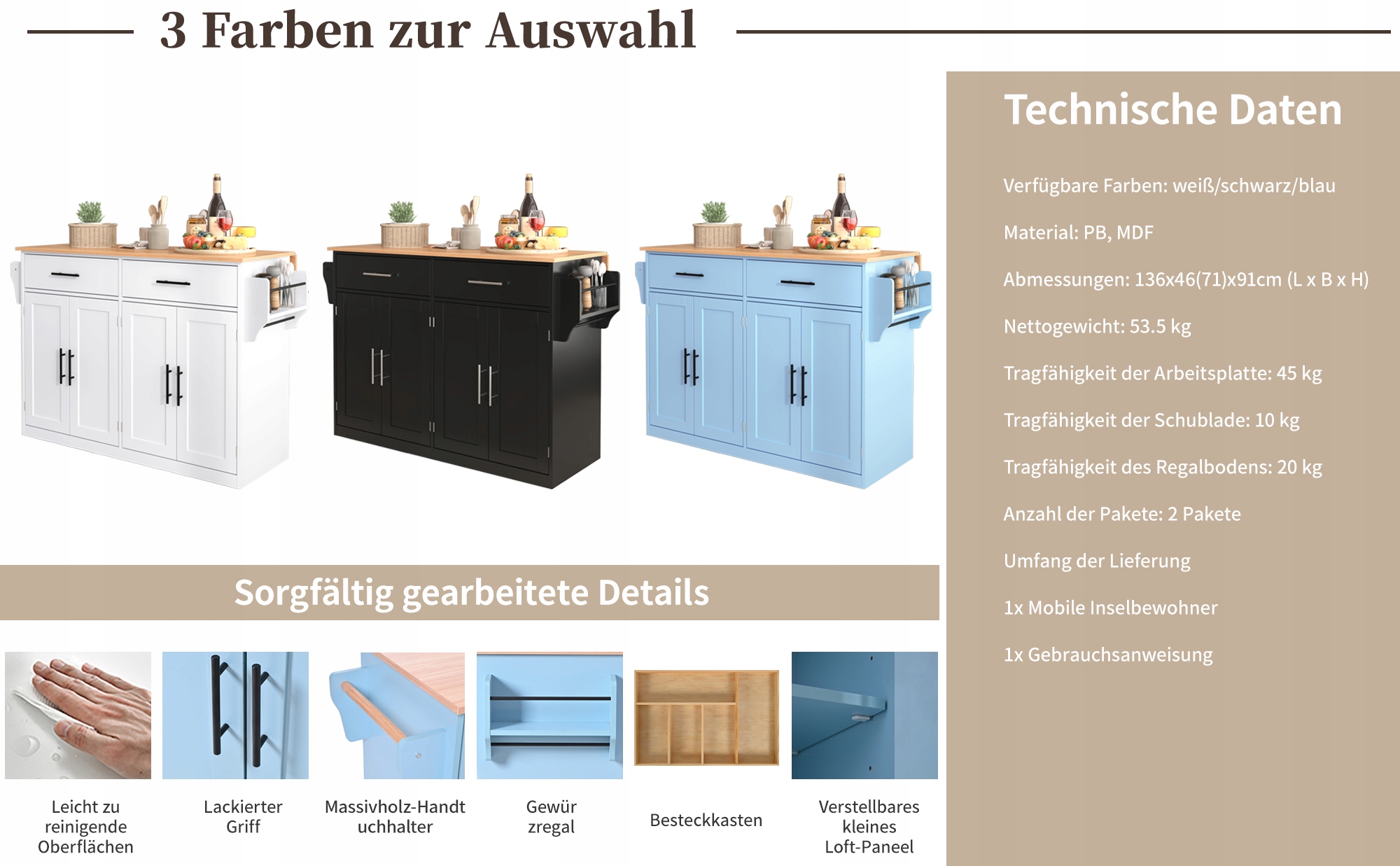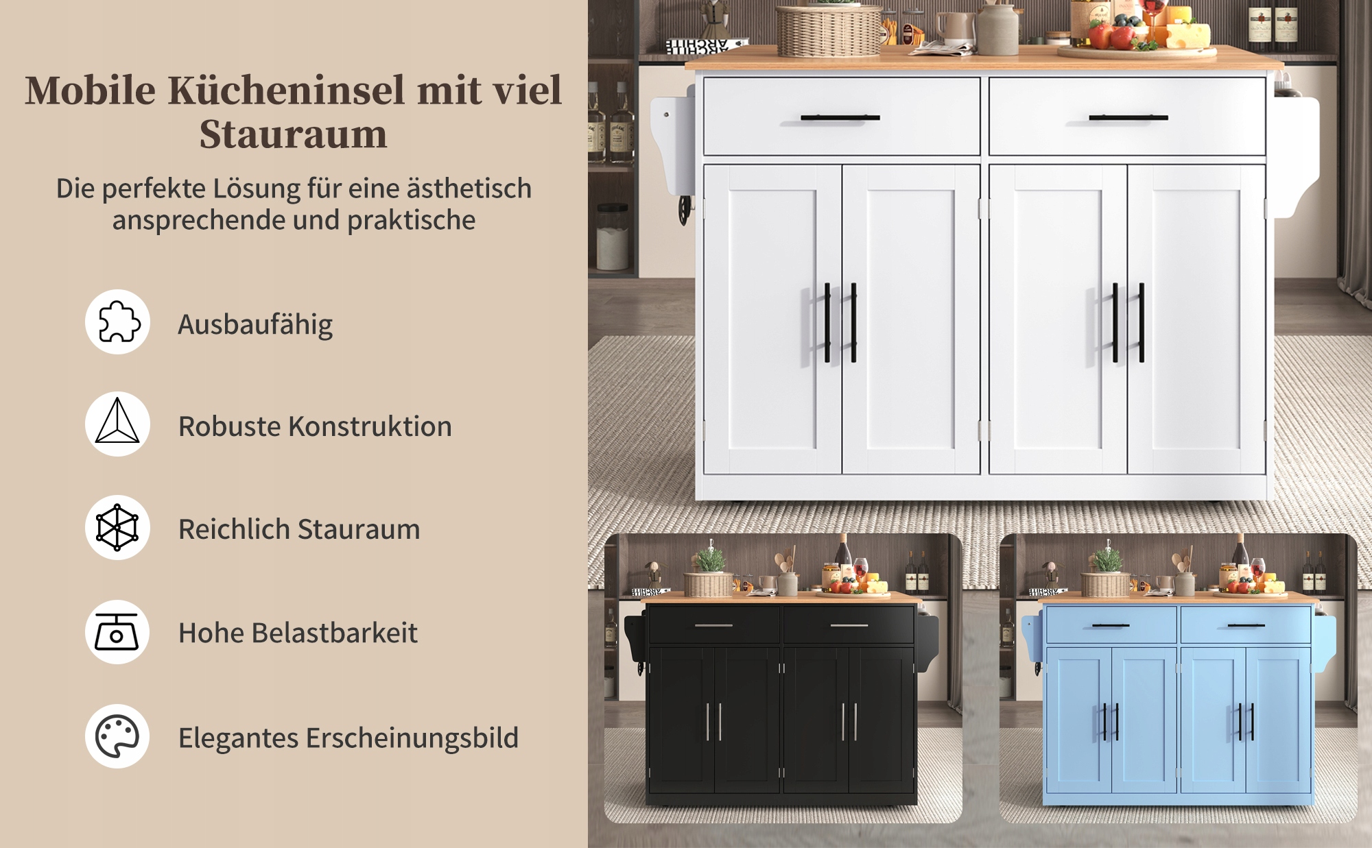 5. Острів для зберігання: Цей кухонний острів також оснащений чотирма суцільними дерев’яними ногами. Якщо вам не доведеться переміщувати цю шафу, ви можете замінити колеса на ноги шафи.