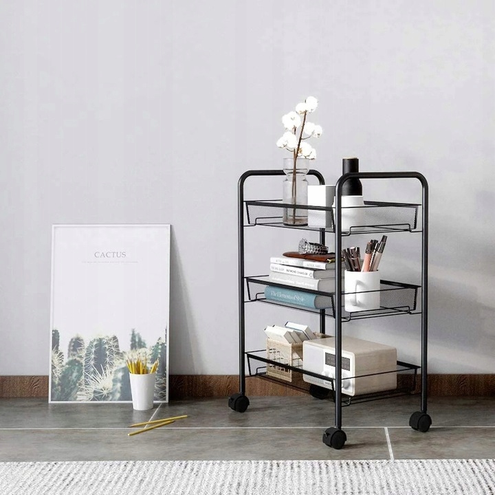 Більше жодного безладу! Практична трирівнева полиця на колесах. Чудово працюватиме як вдома, так і в майстерні. У них можна зберігати предмети для кухні та ванної кімнати, а також дрібні аксесуари. Завдяки універсальному дизайну чудово підійде до будь-якого інтер'єру.