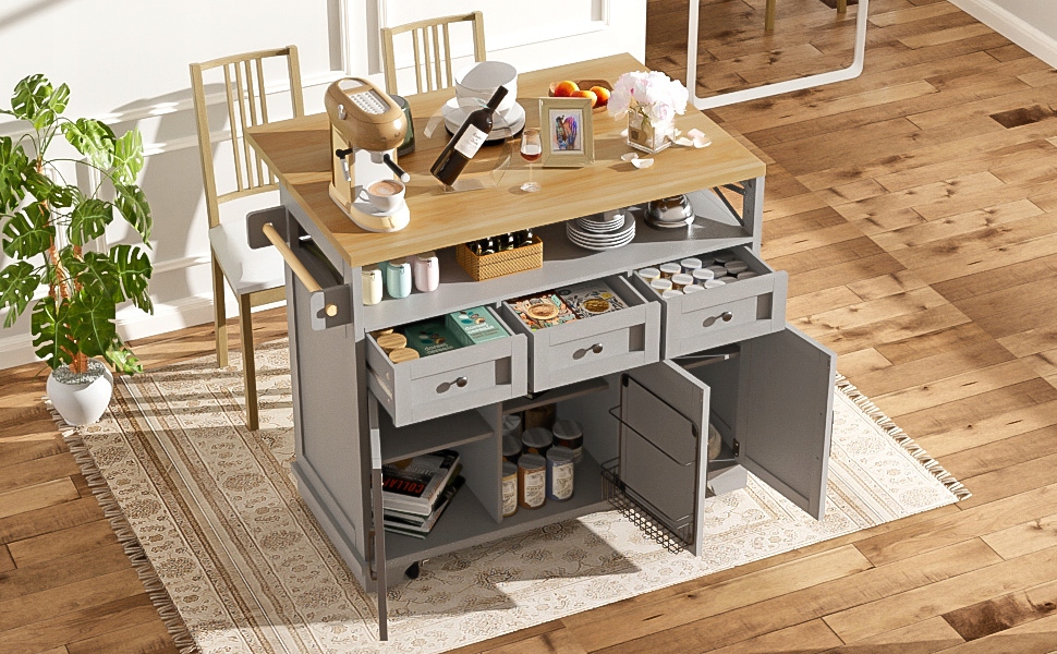Кухонний візок в / складених верхніх та регульованих полицях, мобільний кухонний острів