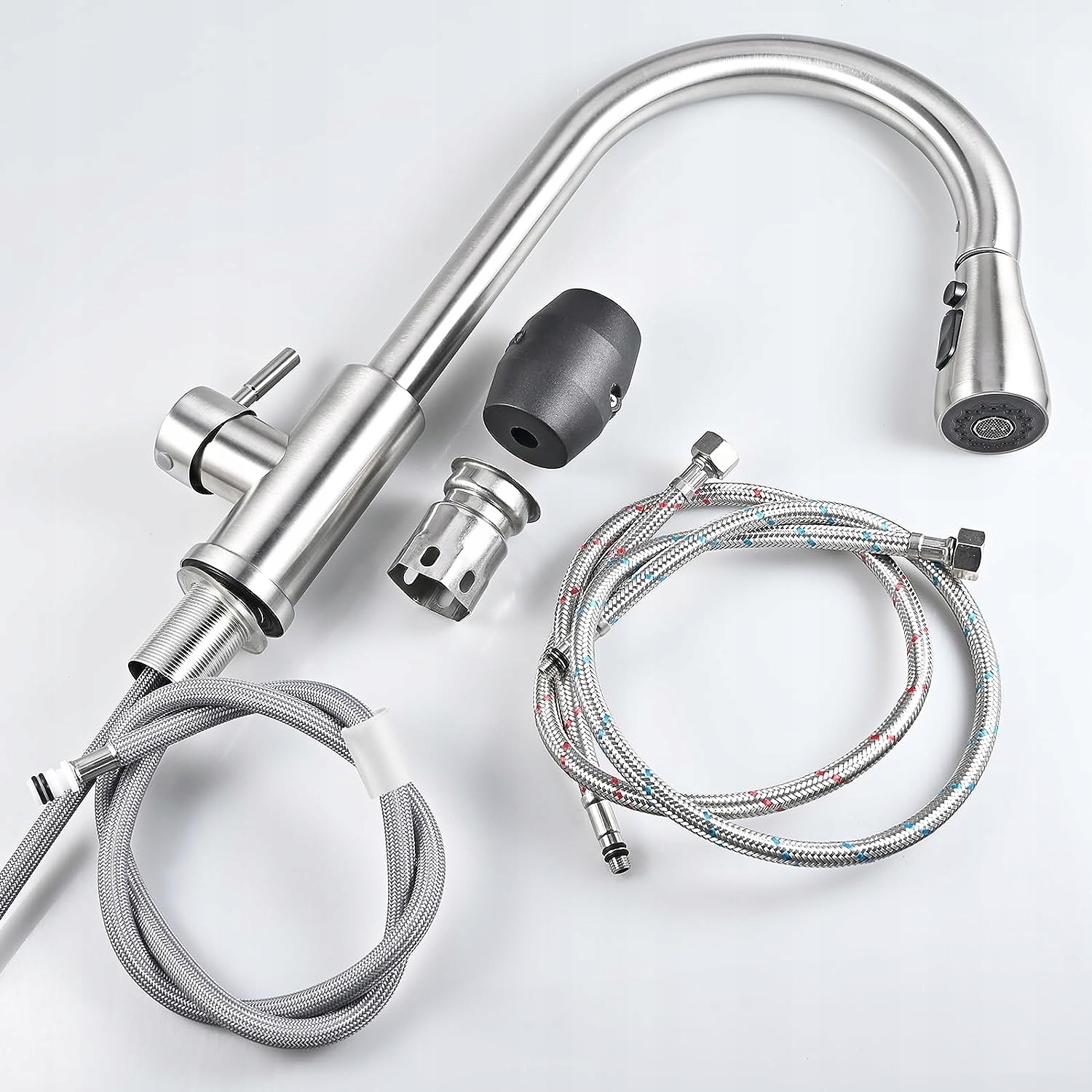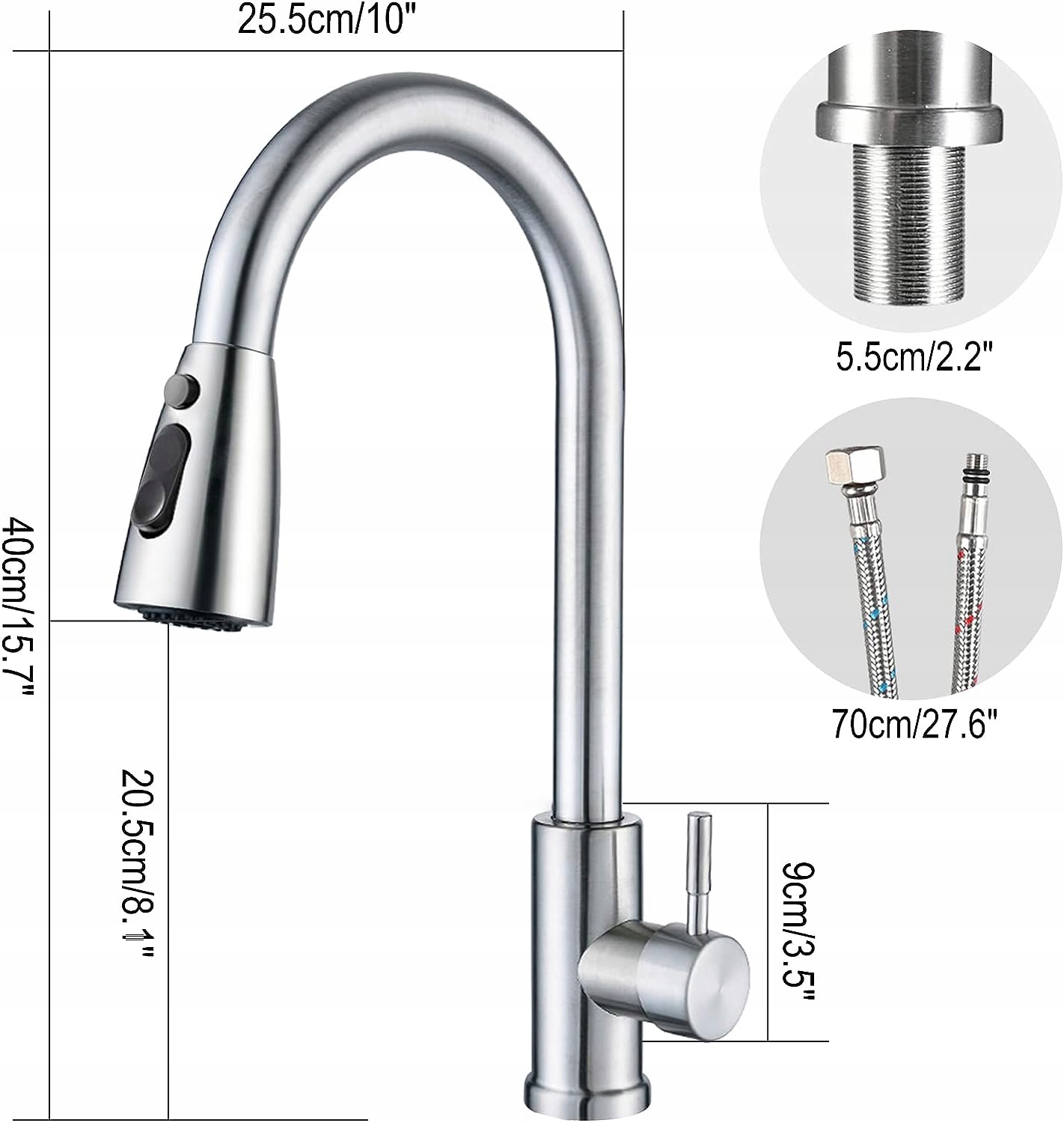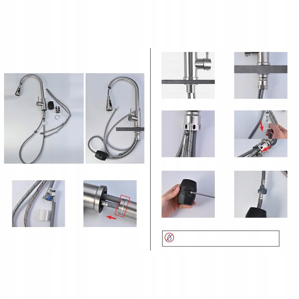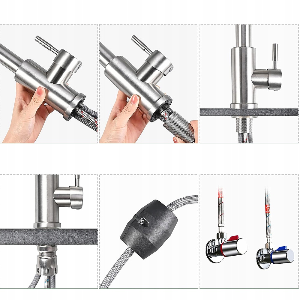 - 💧 - 【Обертання на 360 градусів】: Цей висувний кухонний змішувач має не лише висувну розбризкувальну головку, але також може вільно обертатися на 360 градусів, розширюючи вибір кухонних змішувачів.
