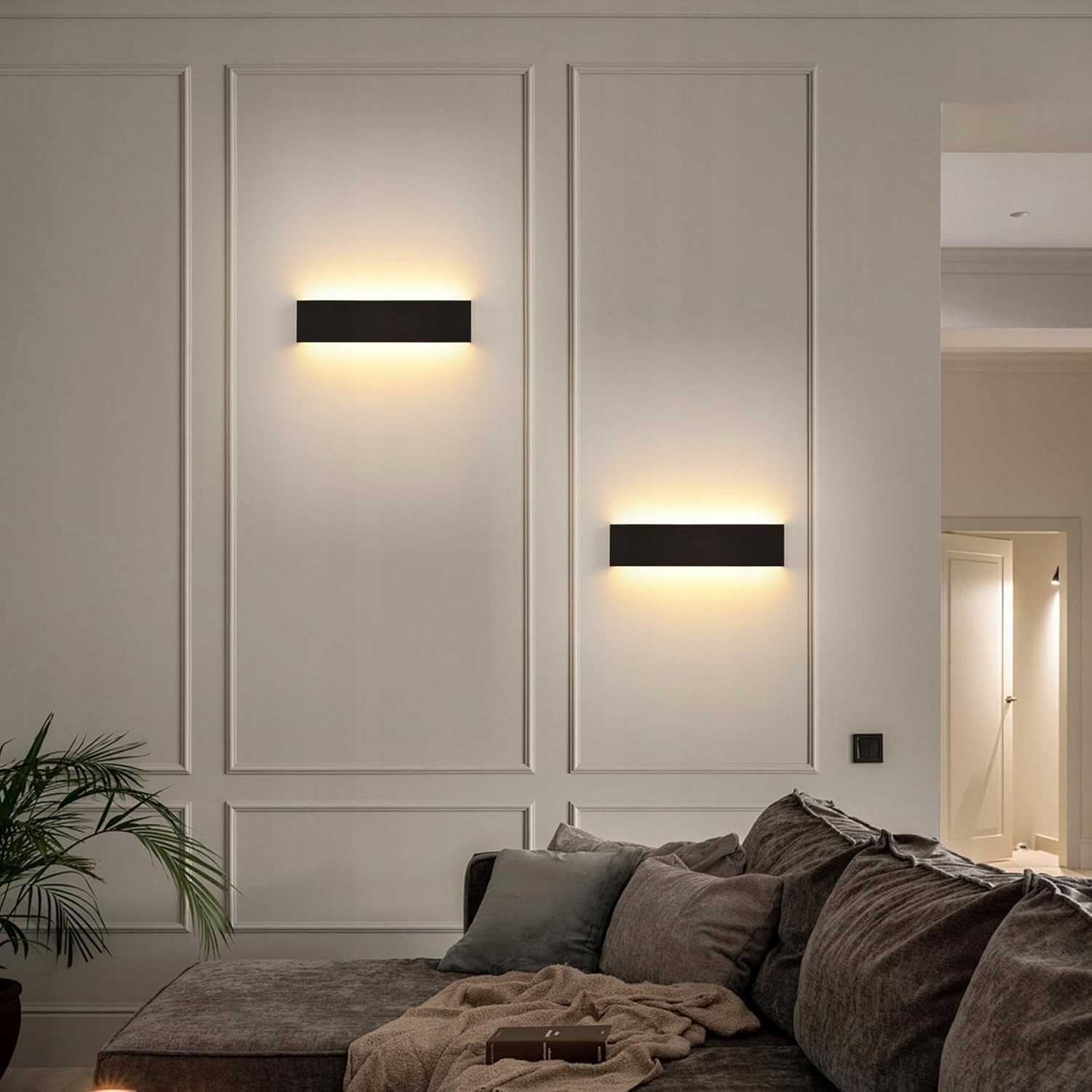 KUKAK - сучасний світлодіодний настінний світильник потужністю 10 Вт (33 см) з ефектом «вгору-вниз». Алюмінієвий корпус, мінімалістичний дизайн і три кольори світла на вибір: 3000K / 4000K / 6000K. Ідеально підходить для коридорів, спалень, віталень або сходів. Розміри рами: 33 × 8 × 4 см (ширина × глибина × висота). Колір: чорний. Матеріал: алюміній + акрил.