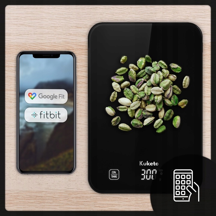 Кухонні ваги Kuketo працюють із такими популярними програмами для здоров’я, як Google Fit і Fitbit. Завдяки цій функції ви можете легко синхронізувати дані про ваші страви та контролювати калорії та харчові цінності безпосередньо в додатках, якими ви користуєтеся щодня.