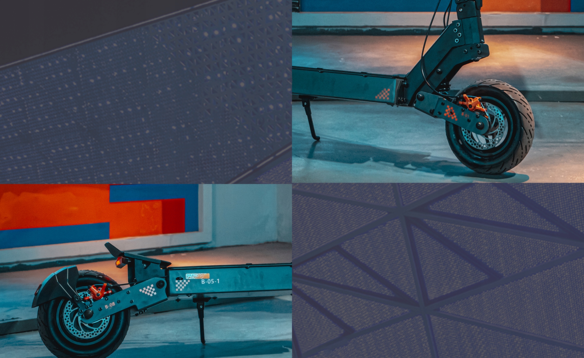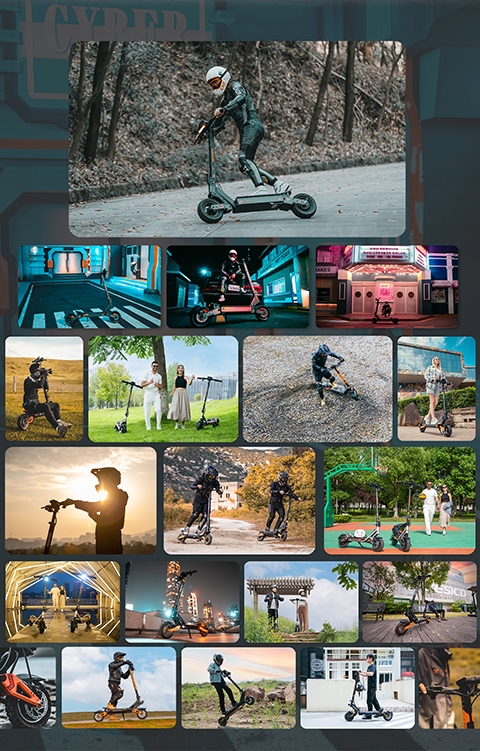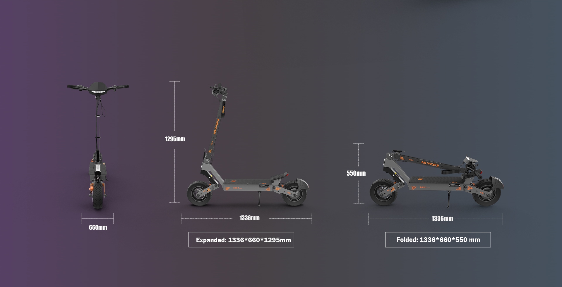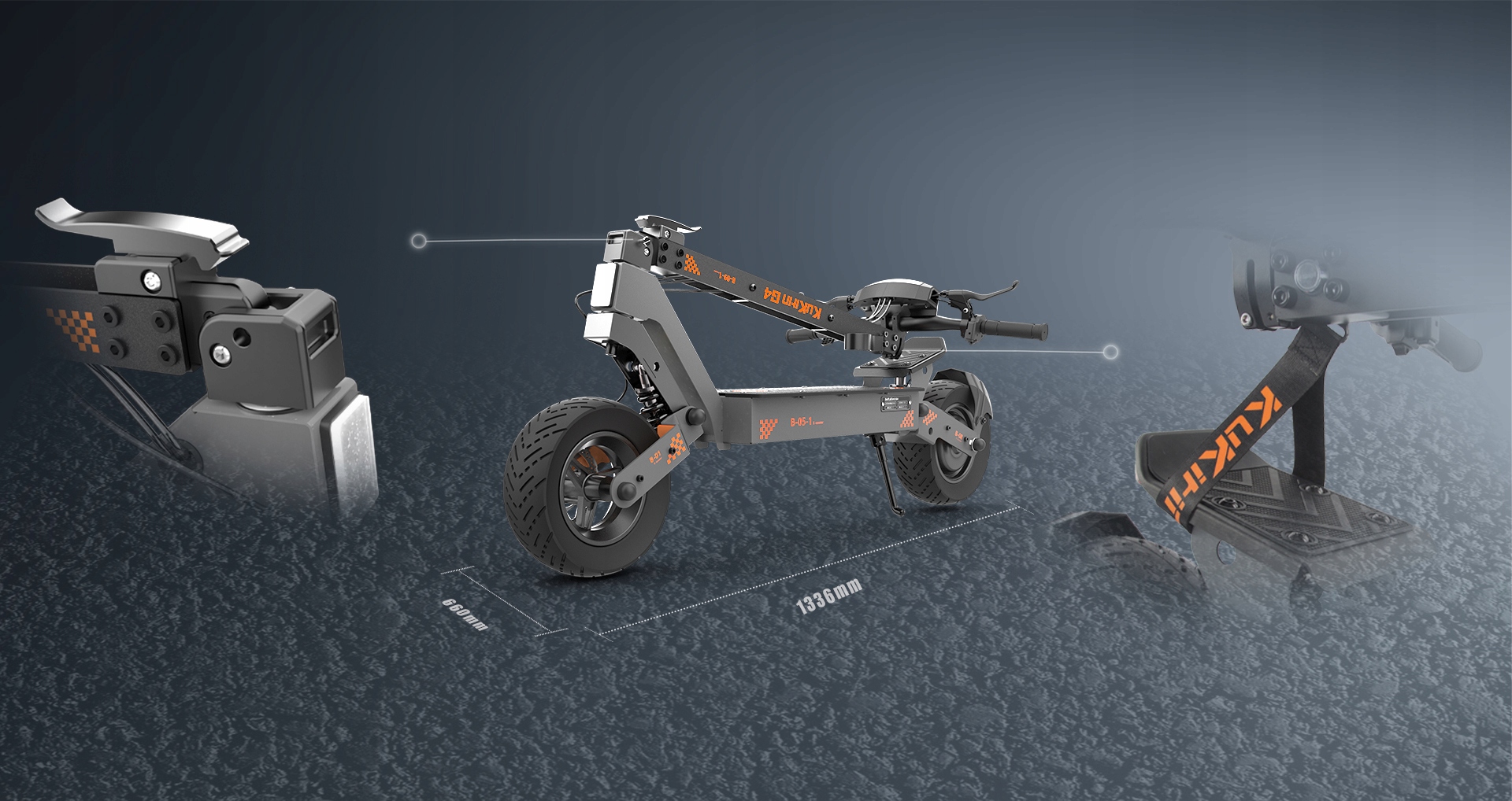 Гібридна сталево-алюмінієва рама забезпечує оптимальний баланс між довговічністю конструкції та практичною портативністю, оснащена інноваційним механізмом складання для зручного зберігання. Позашляхові шини шириною 11 дюймів забезпечують чудове зчеплення та стійкість, а ступінь захисту IP54 гарантує надійну роботу в різних погодних умовах.