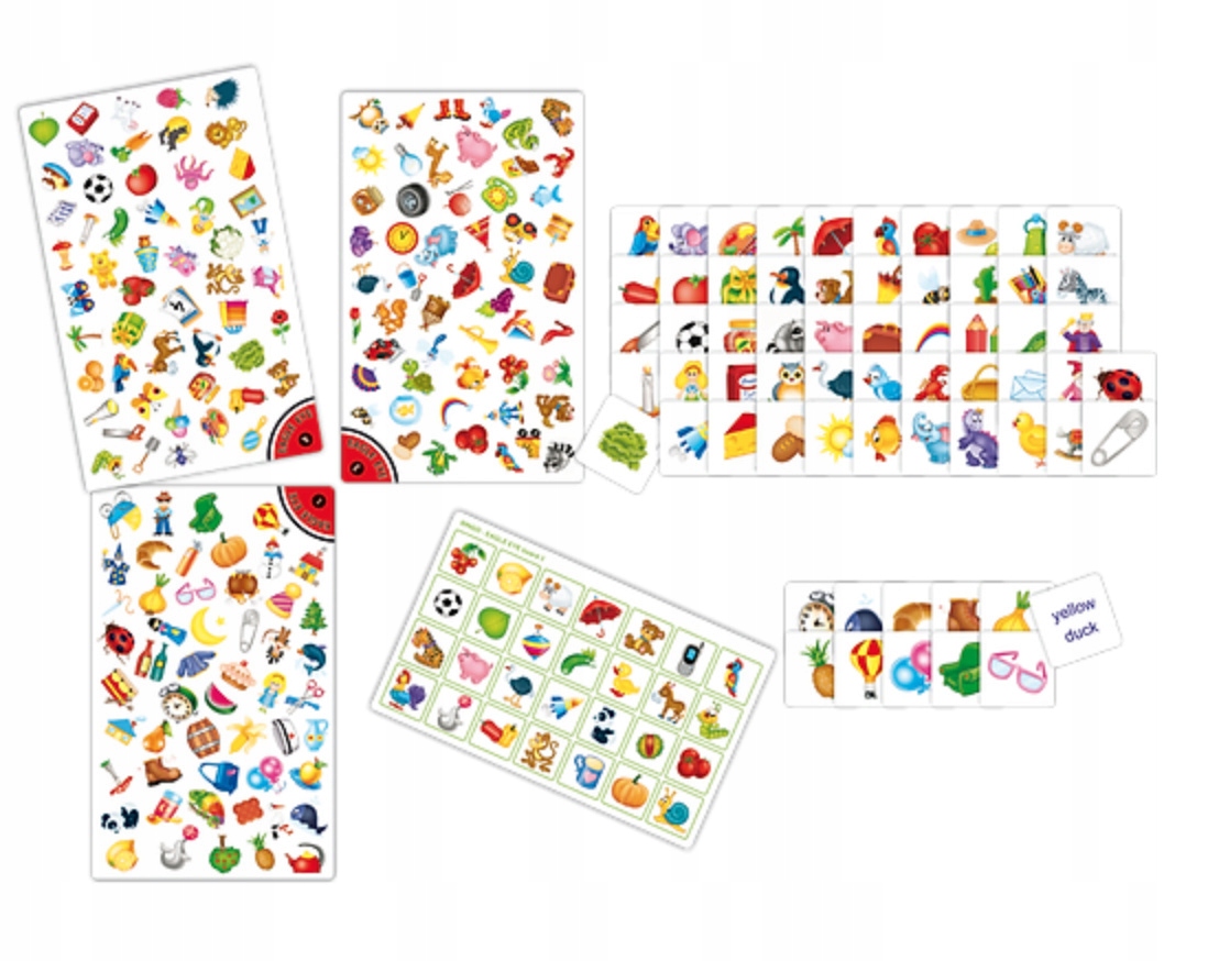 Універсальний навчальний набір для вивчення англійської мови. До 210 коробки з англійськими словами та 4 двосторонніми дошками. Хоча в інструкціях ми включаємо 8 пропозицій ігор, набір можна використовувати багато в чому.