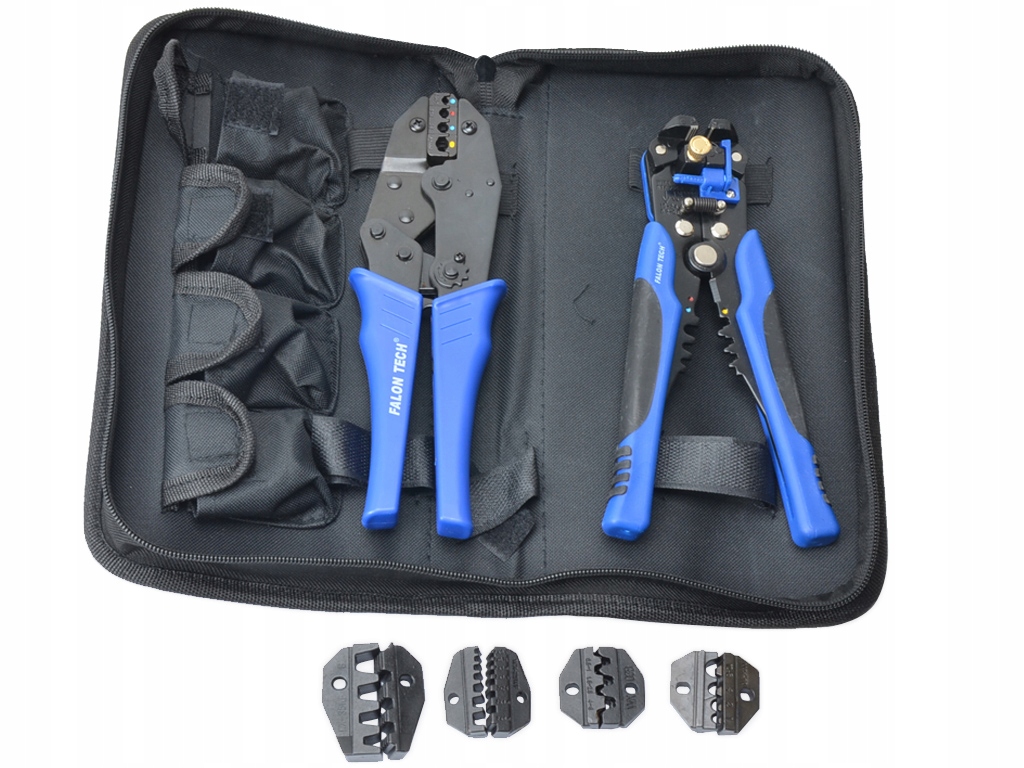 Набір складається з кліщів з автоматичним регульованим храповим механізмом і змінних плашок, адаптованих до п’яти типів електротехнічних роз’ємів. Плашки замінюються шляхом відкручування.