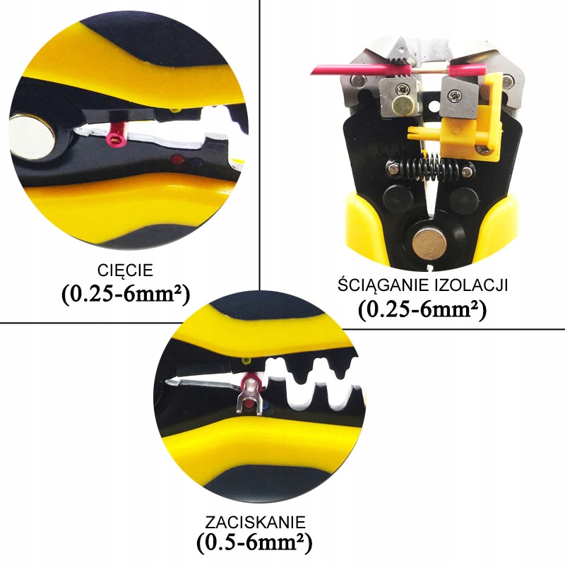 пристрій, призначений для зняття пластикової та гумової ізоляції з одножильних і багатожильних кабелів. Сфера роботи знімача охоплює ізоляцію товщиною від 0,2 до 6 мм2.Висока якість використовуваного матеріалу та якісне виконання гарантують тривалий термін служби. Ергономічна ручка покрита гумовим покриттям, завдяки чому рука надійно утримує знімач.