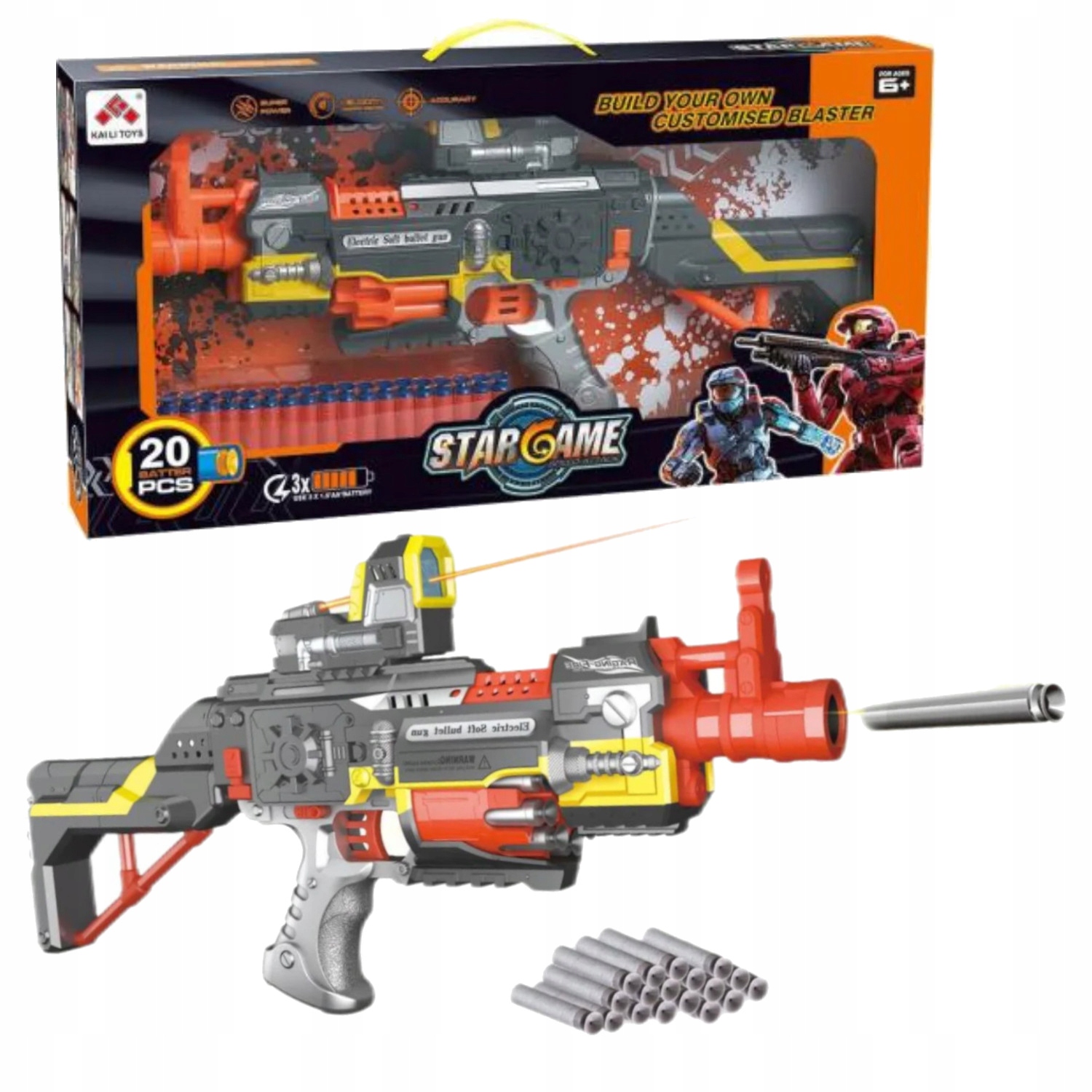 Гвинтівка виготовлена з високоякісного ABS пластику, а стріли виготовлені з безпечного і м'якого поролону, без гострих країв.