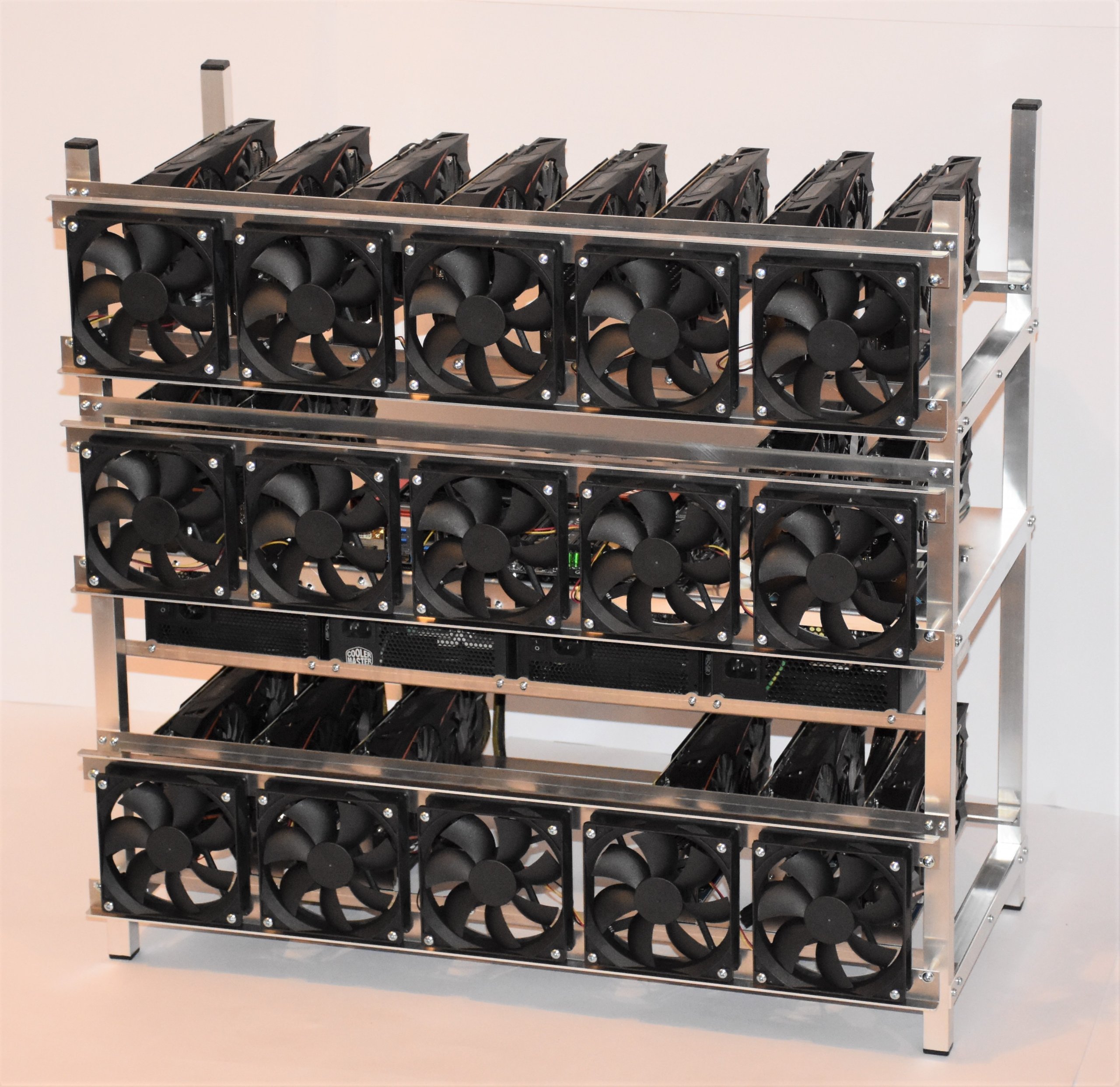 Три модулі вентиляторів, встановлені в корпусі для 20+2 відеокарт нашого виробництва. Пропоновані модулі вентиляторів також можна встановити в корпус ME8B.