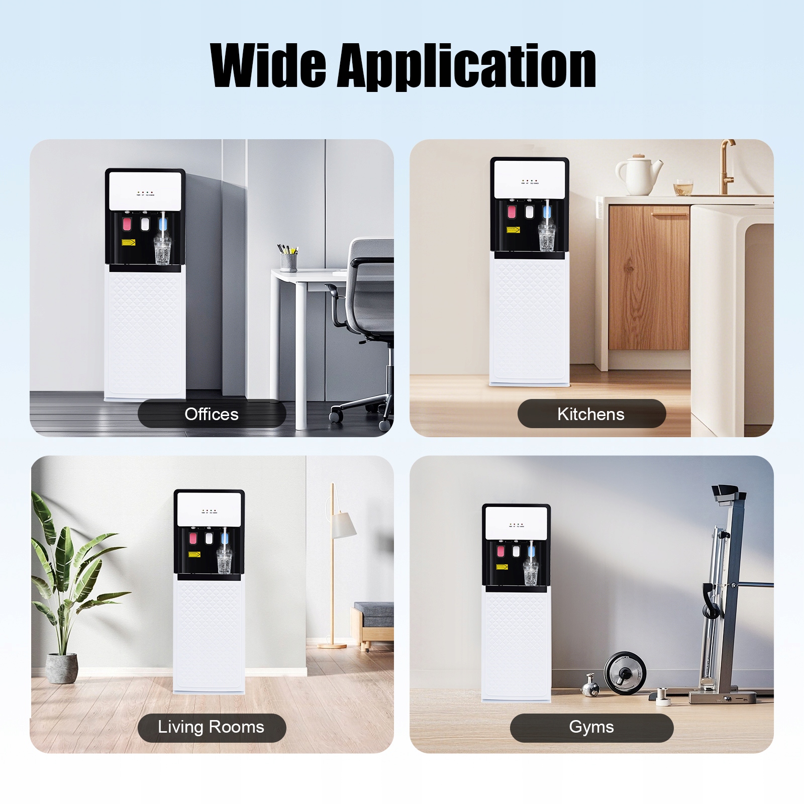 ◾Цей диспенсер гарячої та холодної води поєднує в собі технологію з гуманітарним дизайном, щоб забезпечити вам здорове пиття. Унікальна конструкція нижнього завантаження води полегшує заміну води. Зовнішній вигляд стильний і простий, тому він може продемонструвати ваш висококласний смак незалежно від того, чи розміщений він у вітальні, офісі чи комерційних приміщеннях. Холодна, гаряча вода та вода кімнатної температури надає вам досвід гарячої та холодної питної води, яка є енергозберігаючою, безпечною та зручною у використанні, задовольняючи потреби в питній воді всієї родини.