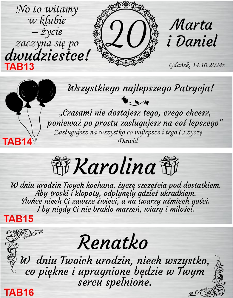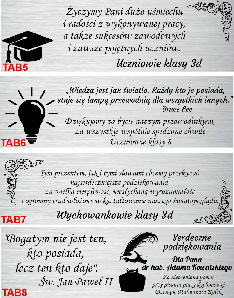 - Пластина з присвятою - можливість будь-якого тексту та графіки (наприклад, сова, цитата, дата)
