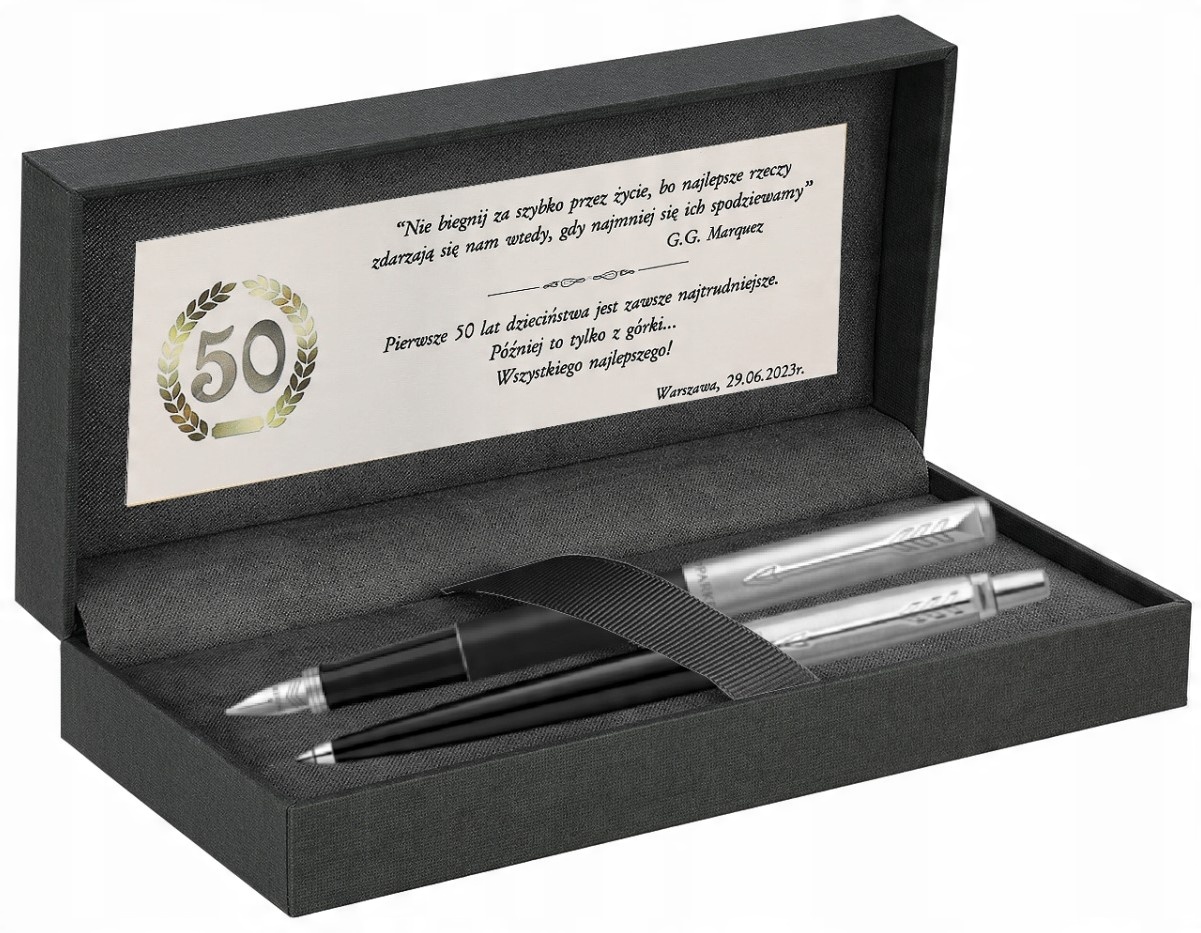 Перова й кулькова ручка Jotter Black у футлярі Premium із табличкою