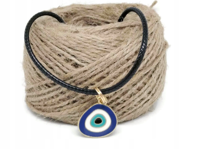 Цей кулон на ремінці є надзвичайним амулетом, який століттями вважався символом захисту ✨. Скляний медальйон глибокого темно-синього відтінку приховує чарівне око ️ - блакитну зіницю в оточенні білого і чорного, що нагадує погляд охоронця світла.