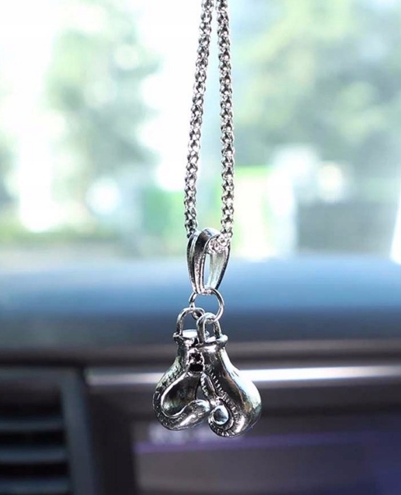 Кулон складається із золотого ланцюжка, на якому підвішено 2 боксерські рукавички. Вся штука зроблена з металу.