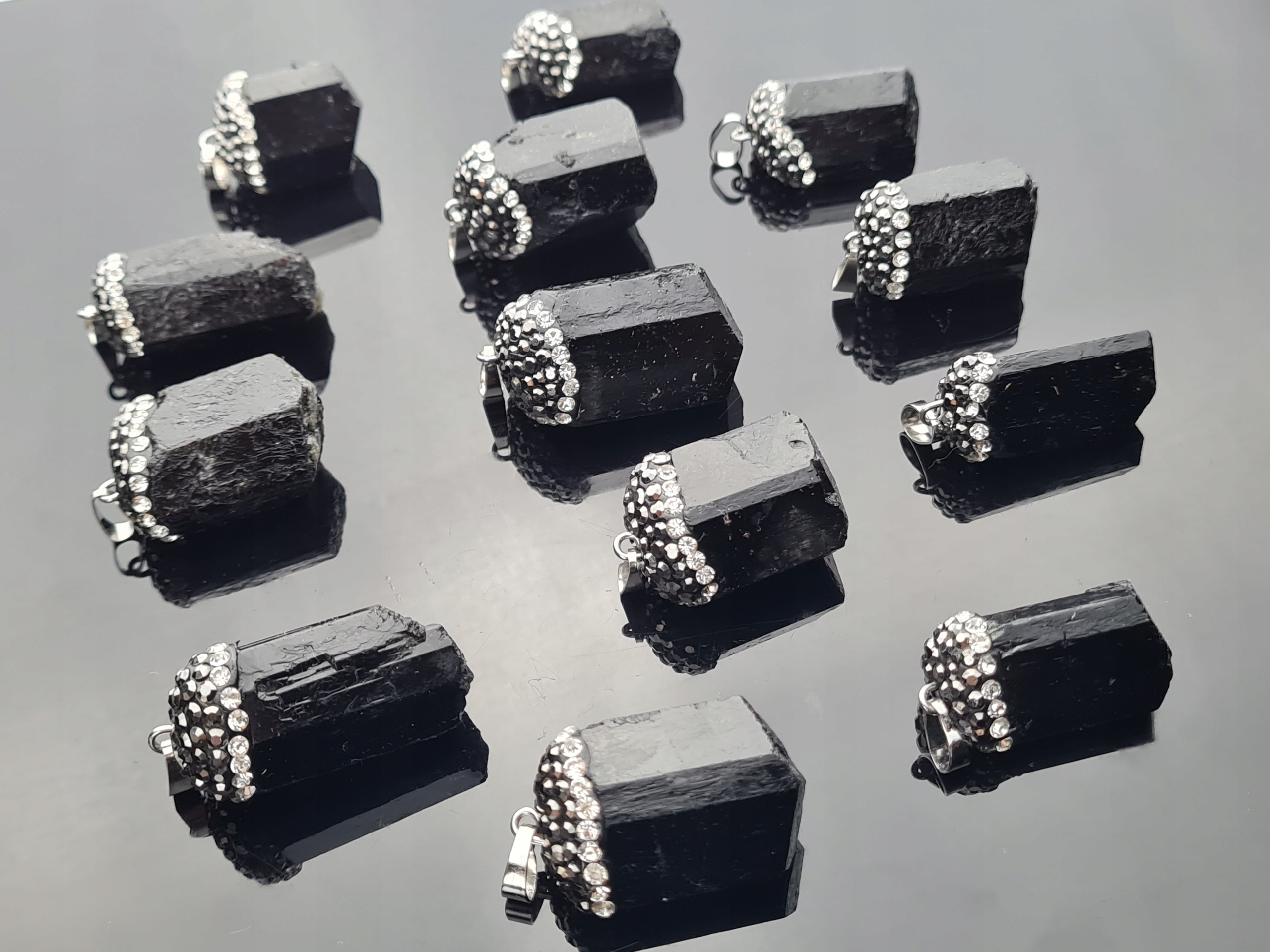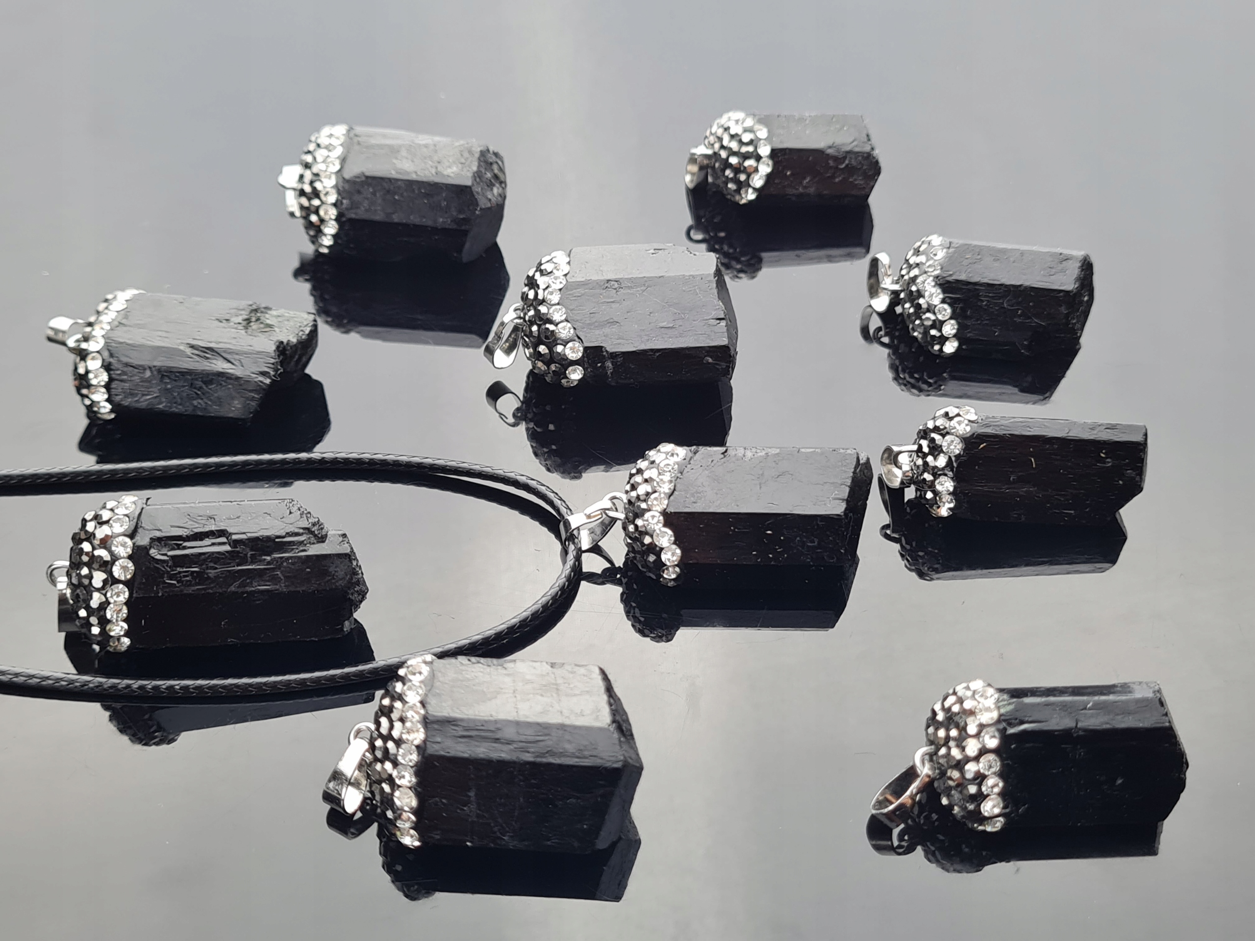 КУЛОН ЧОРНИЙ НАТУРАЛЬНИЙ ТУРМАЛІН ВЕЛИКІ ЦИРКОНИ
